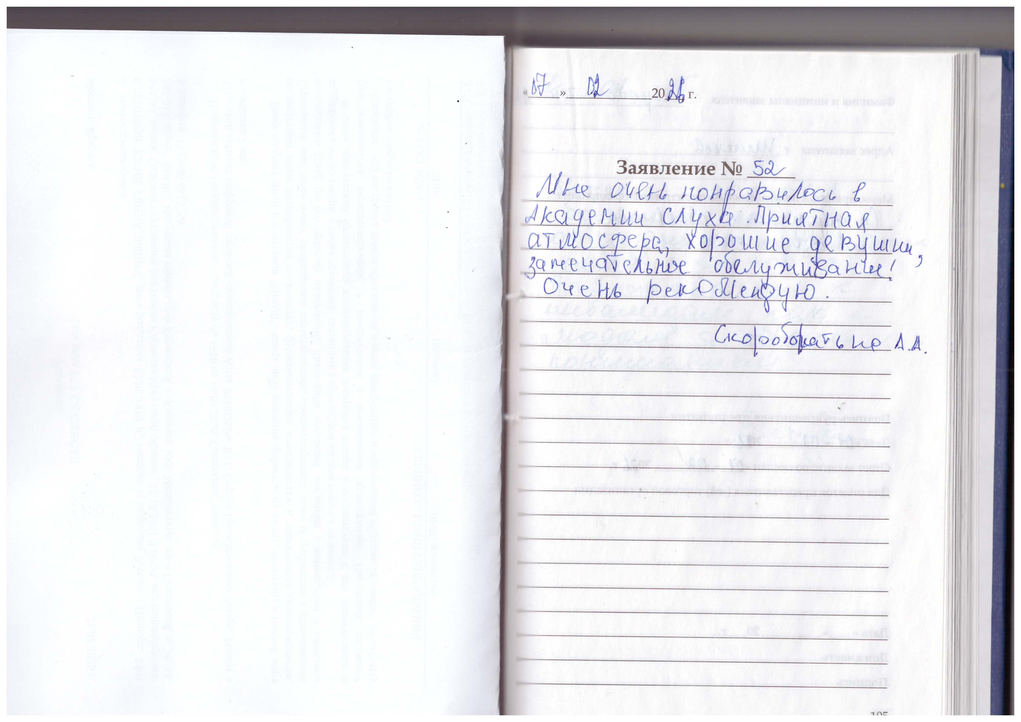 Очень признательна коллективу " Академии Слуха" за внимательное , доброжелательное отношение к пациентам, за советы, предложения.