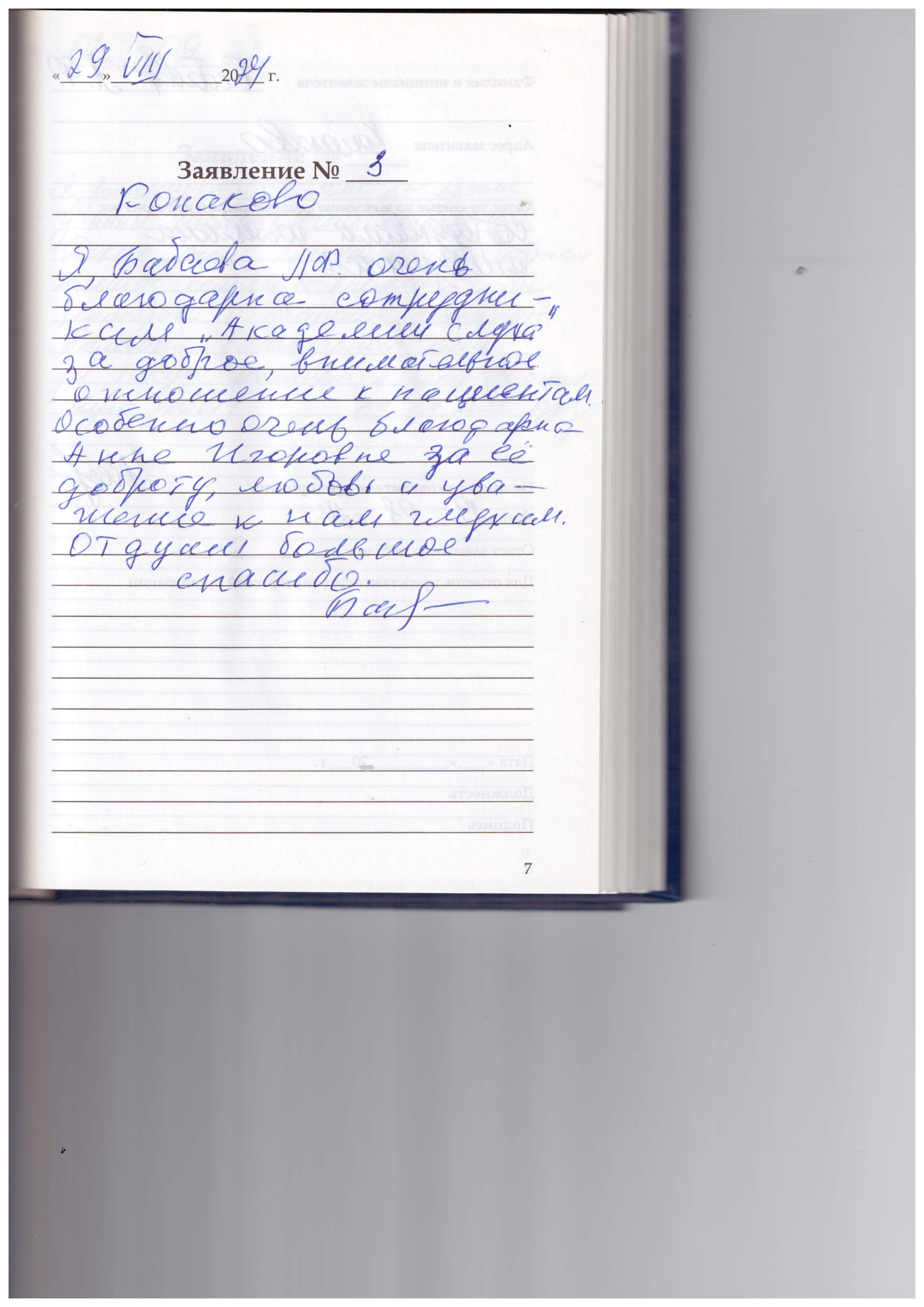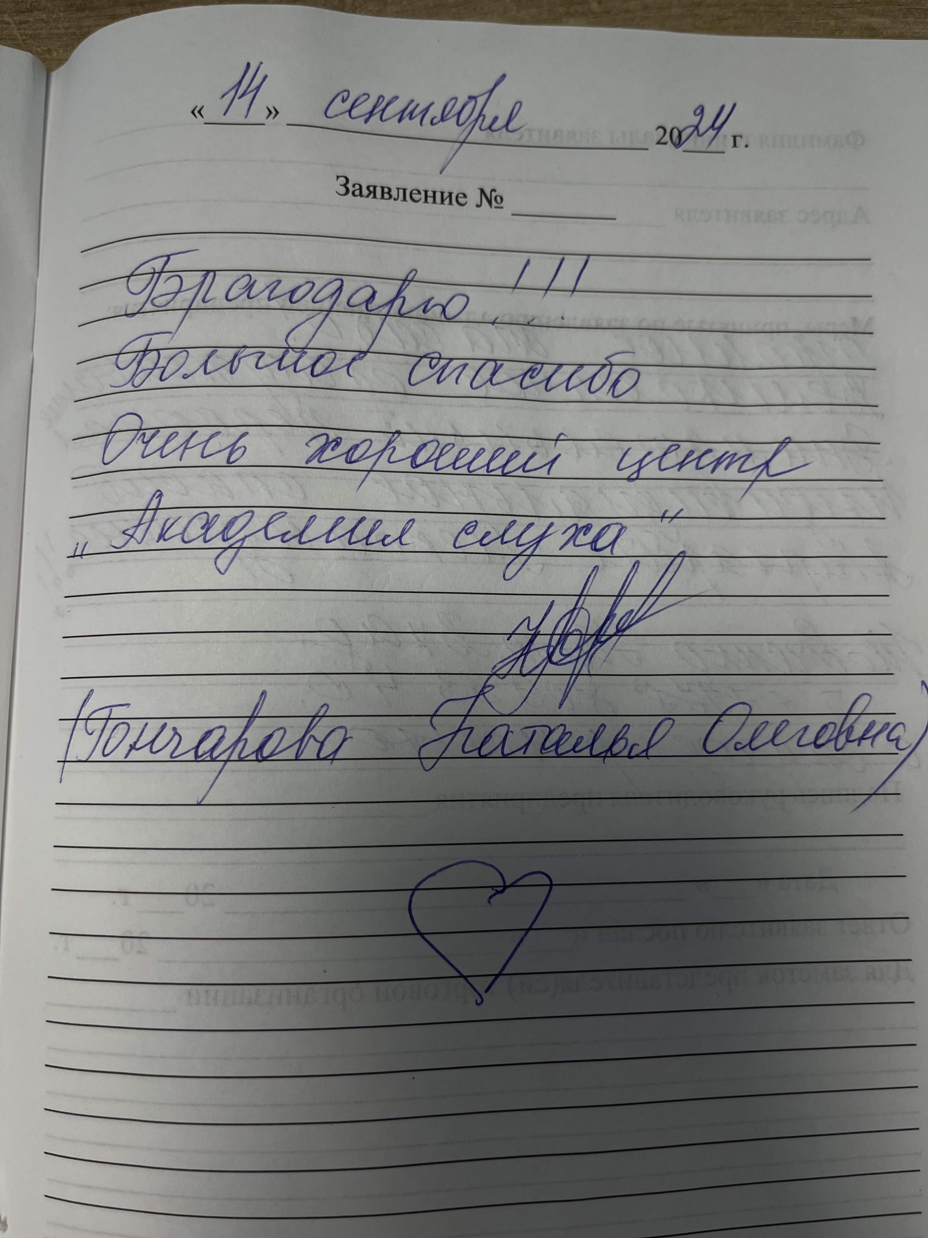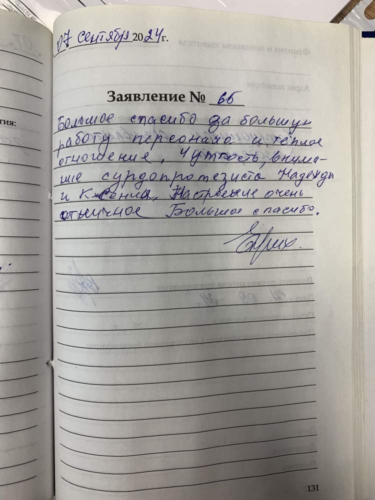 Я, Бабаева Л.Ф., очень благодарна сотрудникам «Академии слуха» за доброе, внимательное отношение к пациентам. Особенно очень благодарна одни Анне Игоревне за её доброту, любовь и уважение к на глухим. От души большое спасибо.