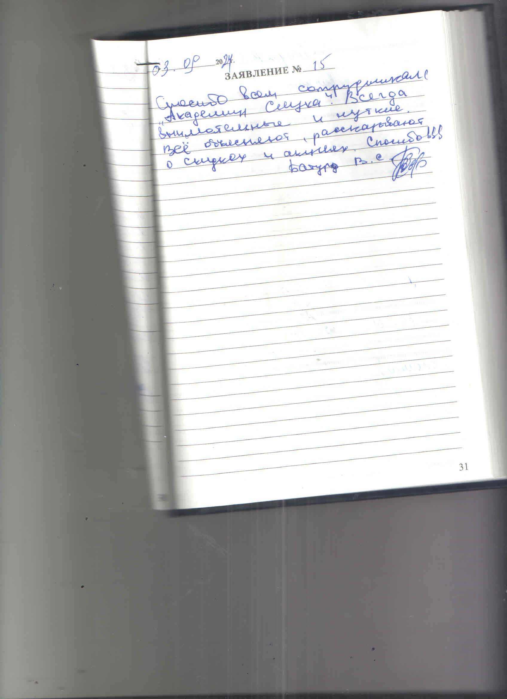 Спасибо всем сотрудникам "Академии слуха"Всегда внимательные и чуткие.Все объясняют,рассказывают о скидках и акциях.Спасибо.Батуро В.С.
