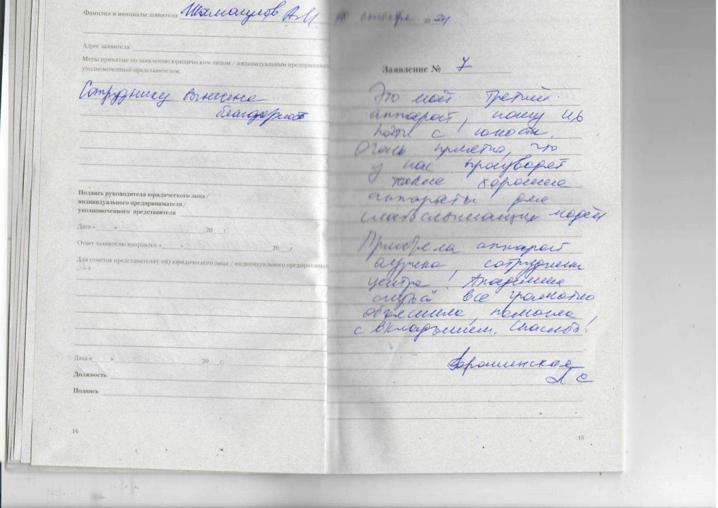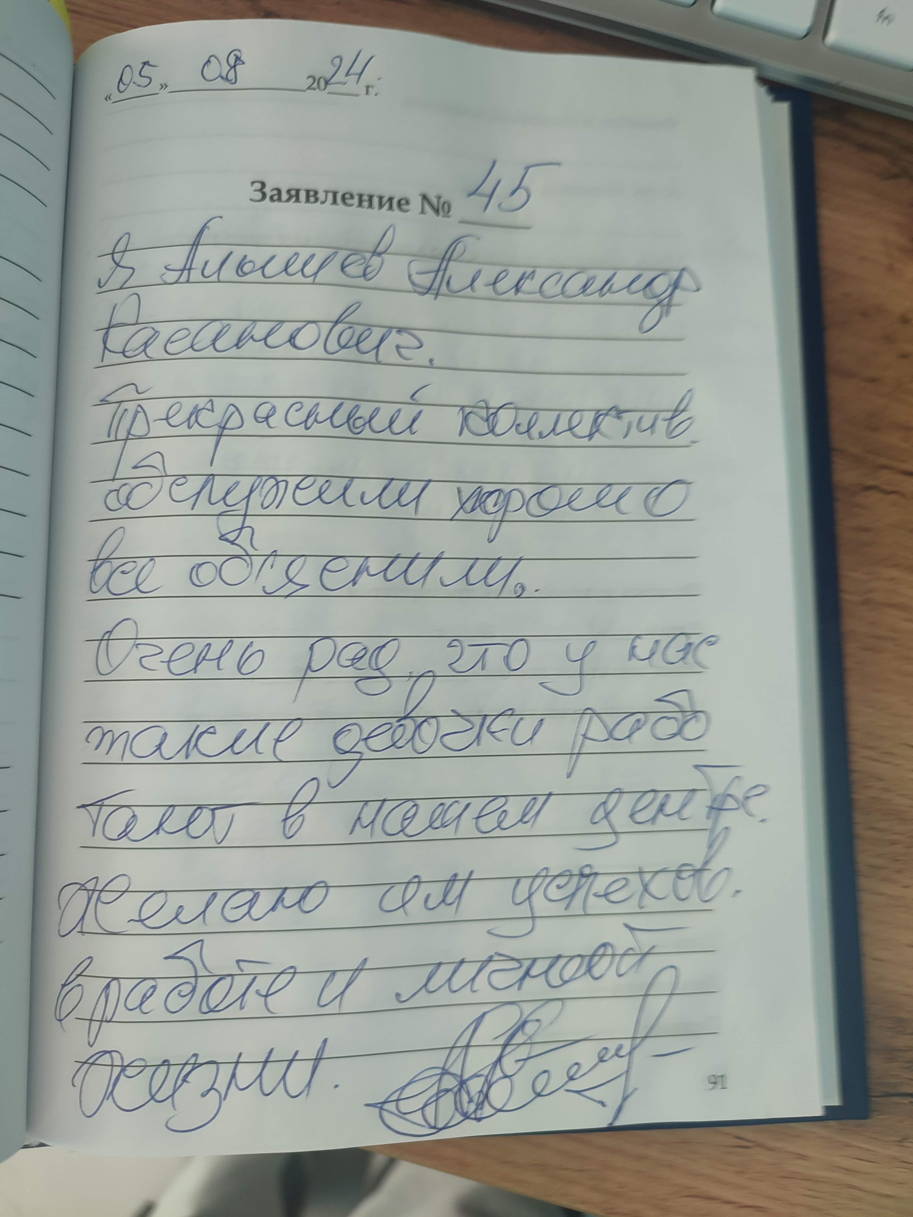 Я Алышев Александр Касимович.Прекрасный коллектив,обслужили хорошо,все объяснили. Очень рад, что у нас такие девочки работают в нашем центре. Желаю им успехов в работе и личной жизни.