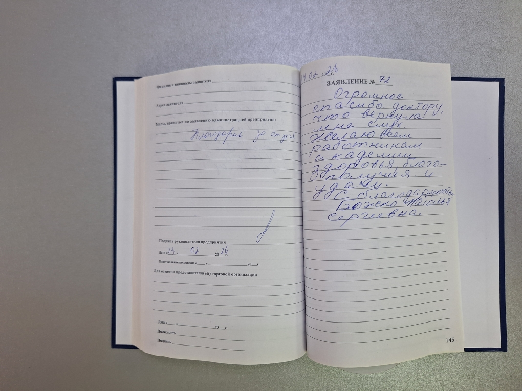 Спасибо большое всему персоналу за заботу и уважение. Желаем оставаться такими же добродушными и отзывчивыми.