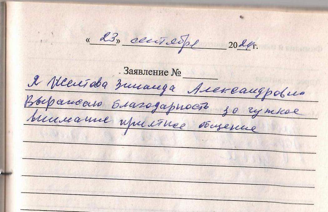 Я, Желтова Зинаида Александровна выражаю благодарность за чуткое внимание приятное общение.