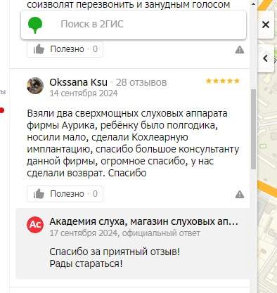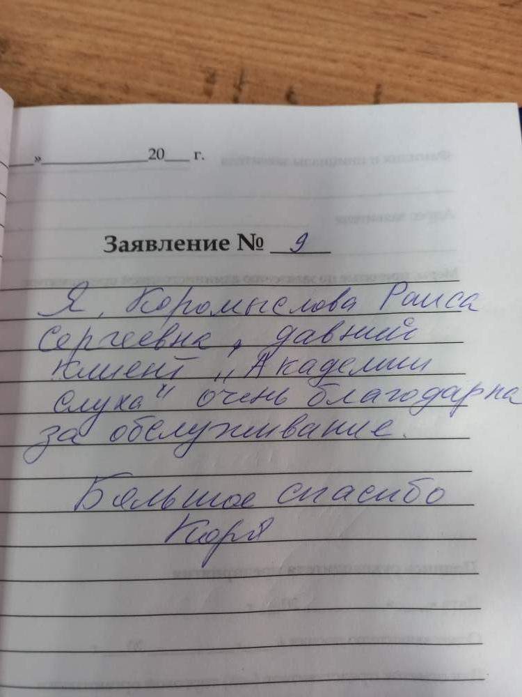 Огромное спасибо " Академии Слуха" за добросовестный труд. Сотрудники очень вежливые и отзывчивые .Доступно все объяснили, настроили СА и рассказали как пользоваться . Крепкого всем здоровья