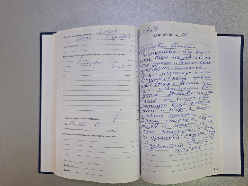 Печникова Татьяна Дмитриевна ,хочу выразить свою благодарность за очень чуткое и внимательное отношение коллектива. Всегда подскажут и посоветуют, найдут правильный выход и решение по всем интересующим вопросам. Вежливое обслуживание, на вопросы интересующие всегда отвечают точно и чётко ,а самое главное понятно. Прошу отметить коллектив и поощрить за их очень благодарный ,но очень  не простой и трудный труд. С уважением. 05.02.2026