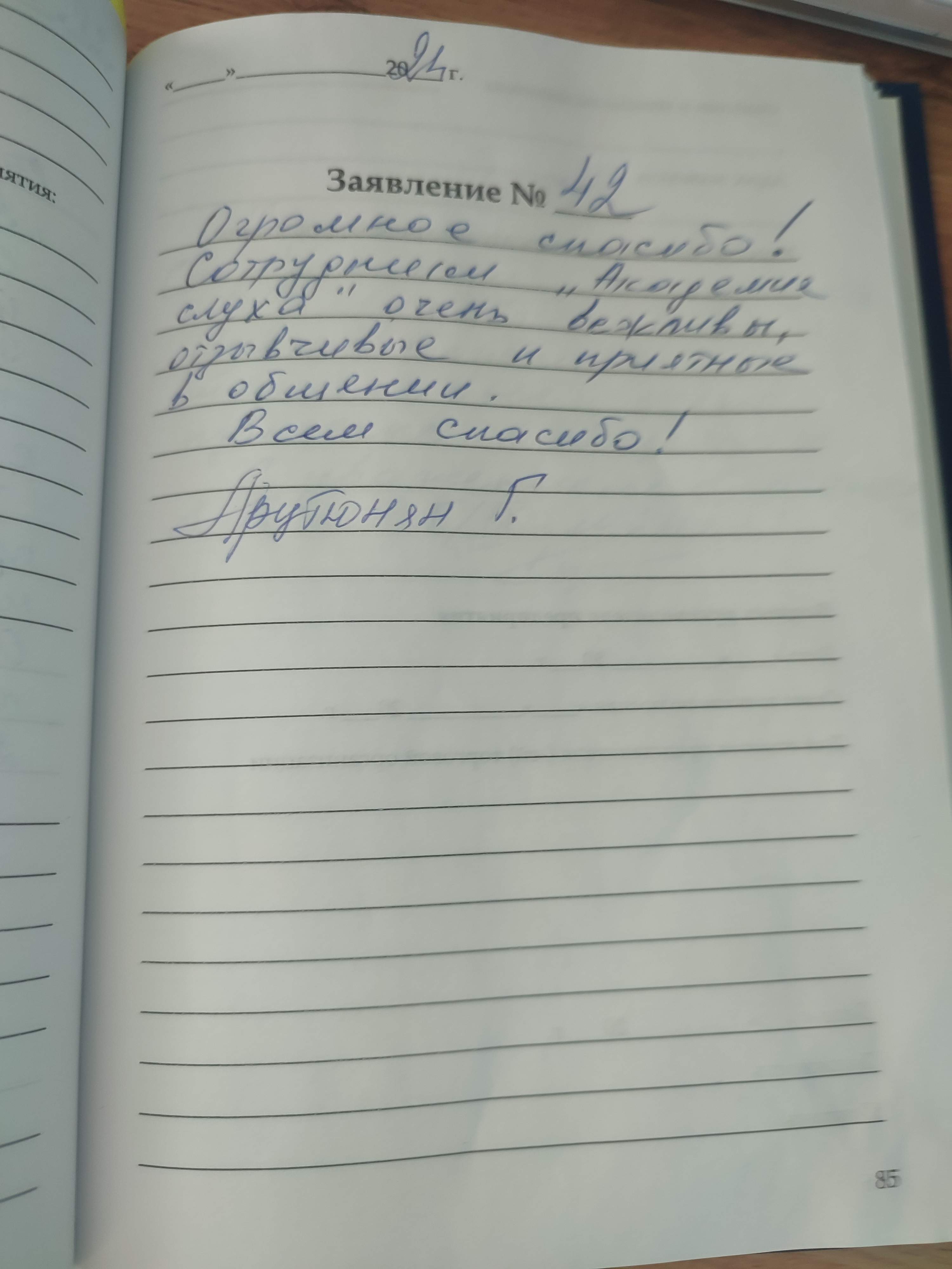 Огромное спасибо! Сотрудникам " Академия Слуха", очень вежливы, отзывчивые и приятные в общении.