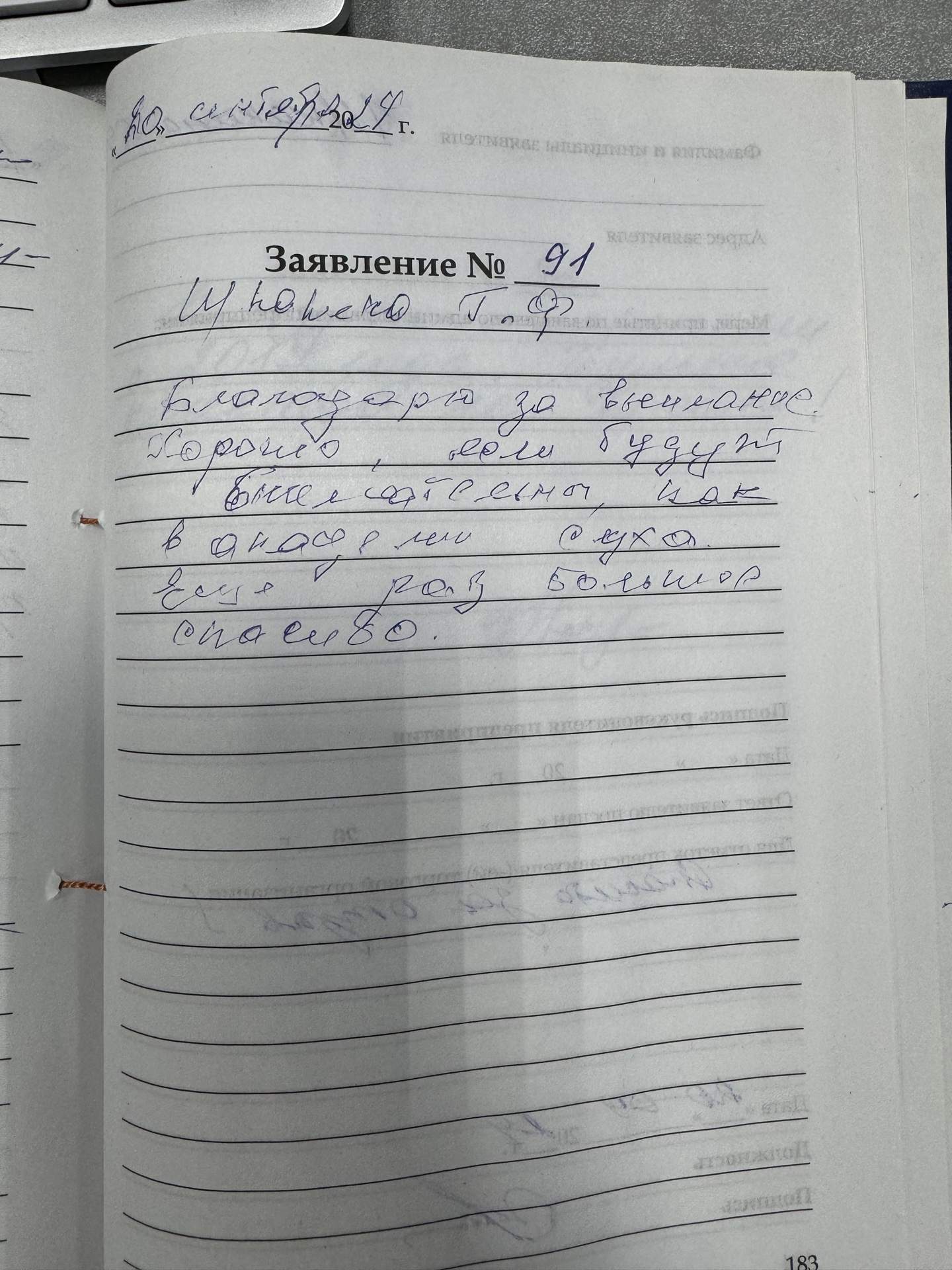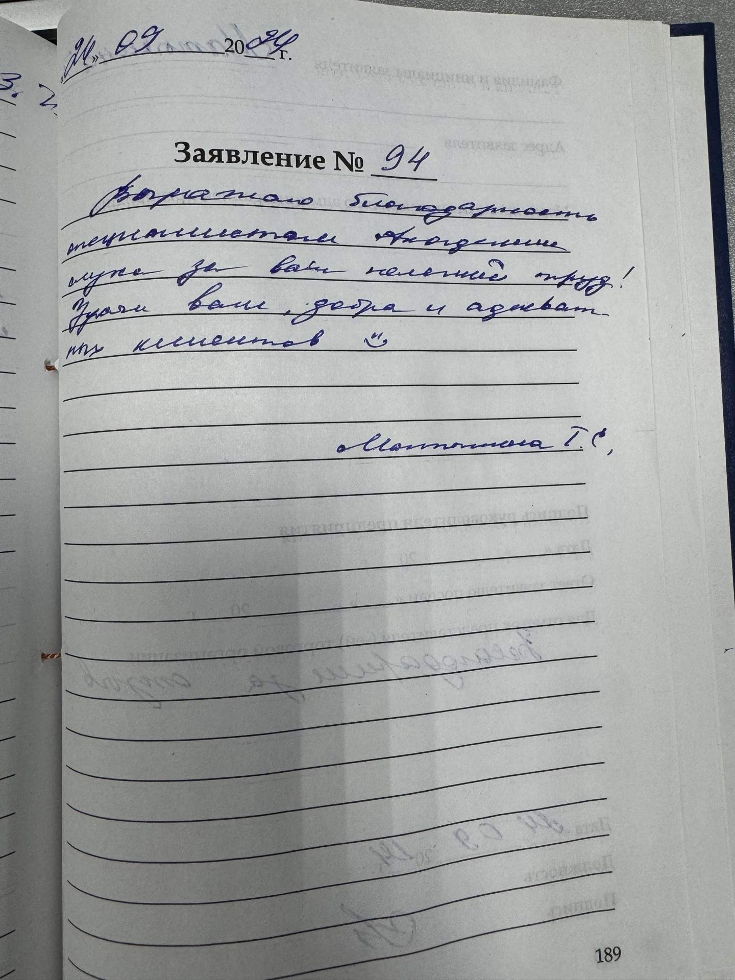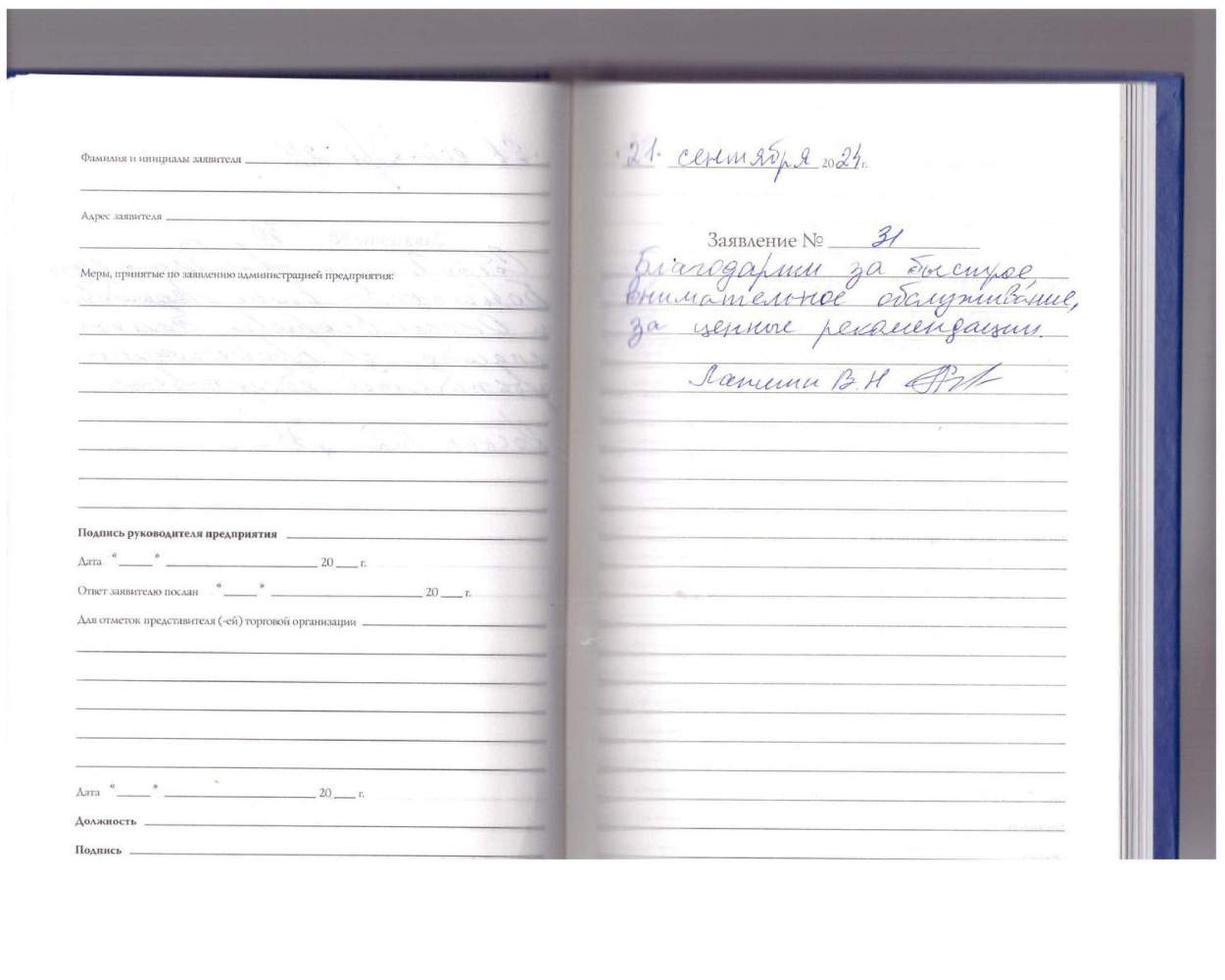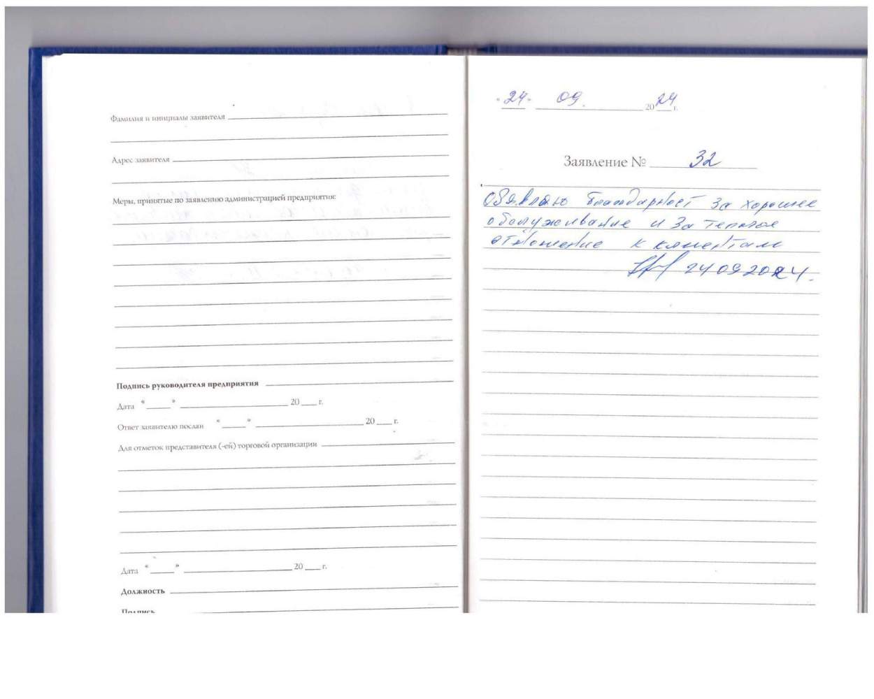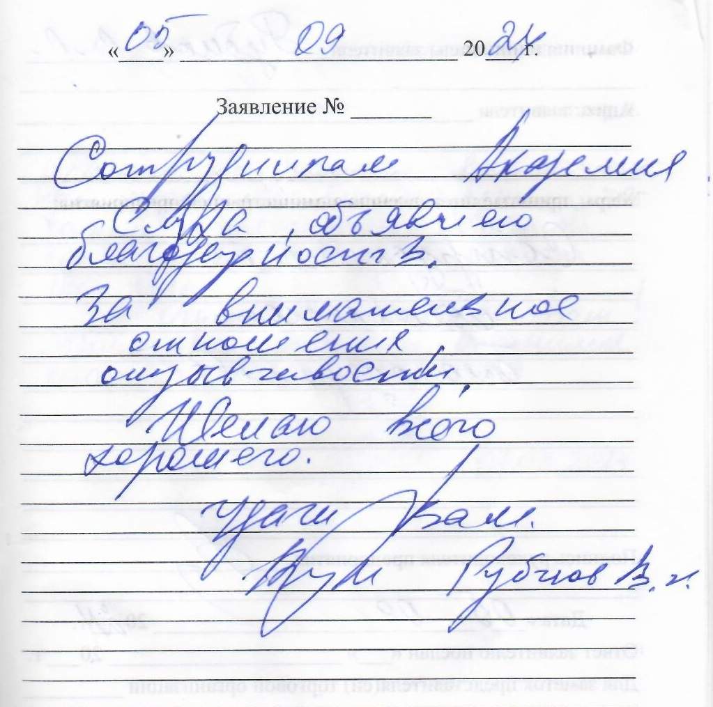 Объявляю благодарность за хорошее обслуживание и за теплое отношение к клиентам.