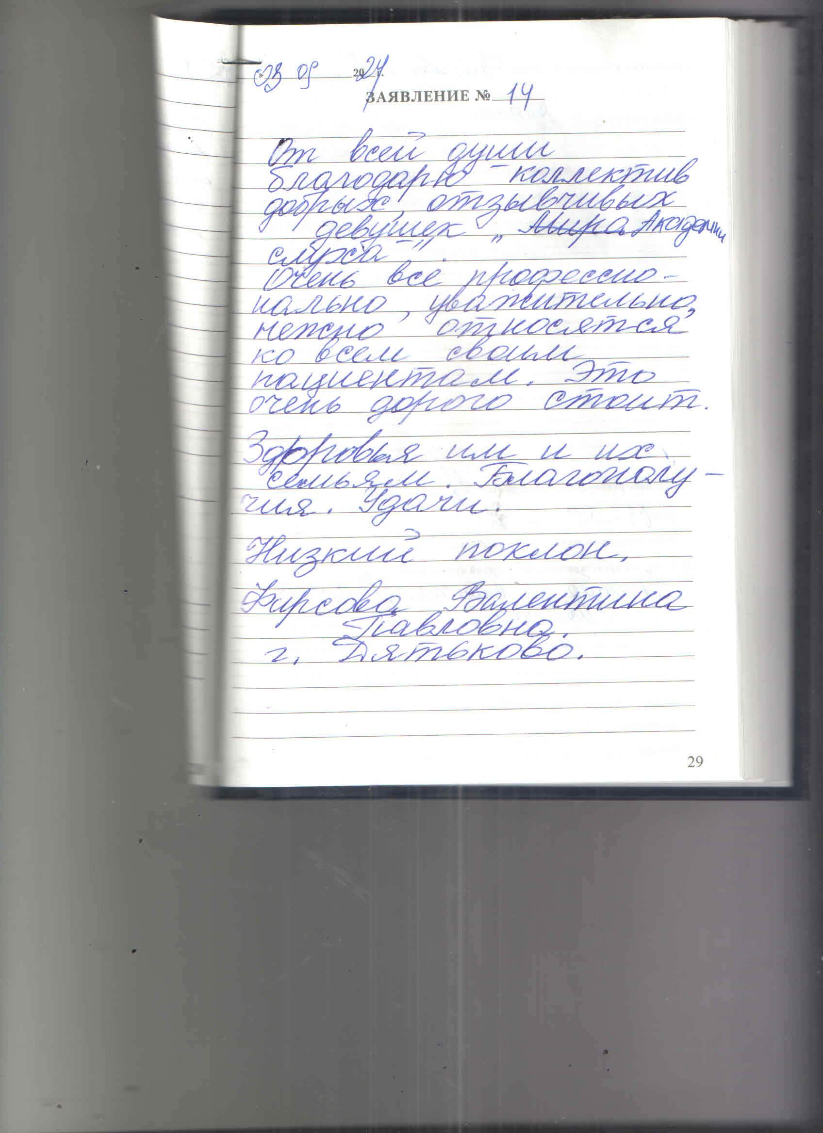 От всей души благодарю коллектив добрых,отзывчивых девушек академии слуха.Очень все профессионально,уважительно,нежно относятся ко всем своим пациентам.Это очень дорого стоит!Здоровья им и их семьям.благополучия.Удачи.Низкий поклон.Фирсова Валентина Павловна,г.Дятьково