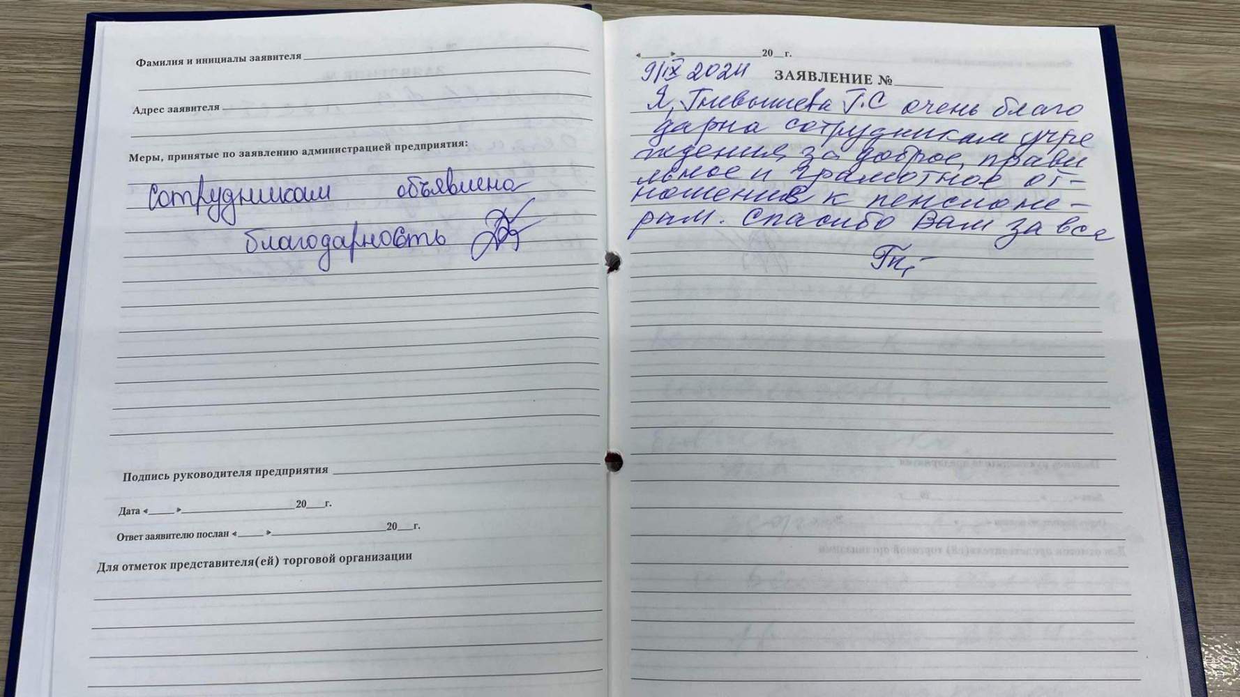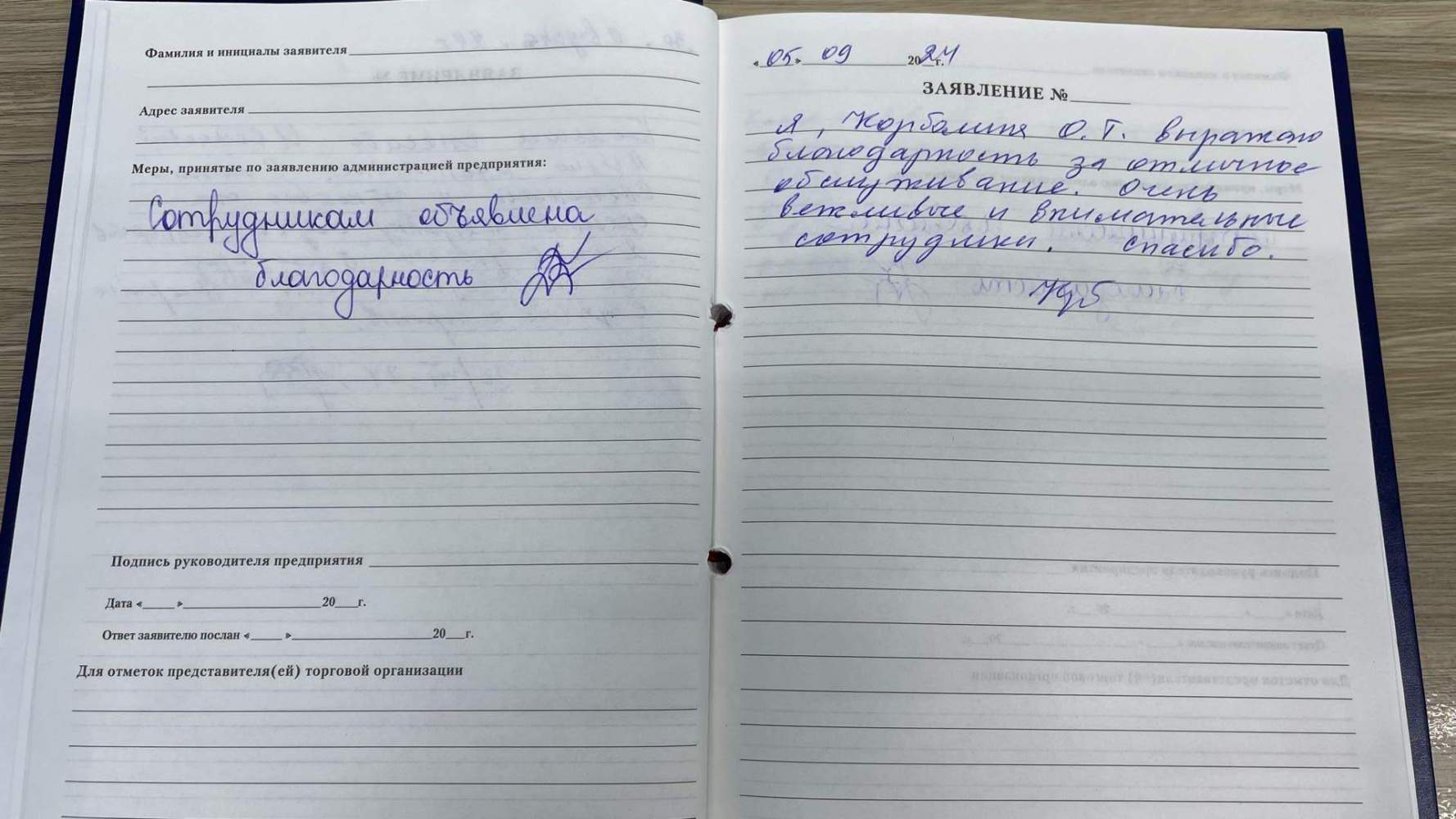 Я, Корболина О.Г. выражаю благодарность за отличное обслуживание . Очень вежливые и внимательные сотрудники. Спасибо.