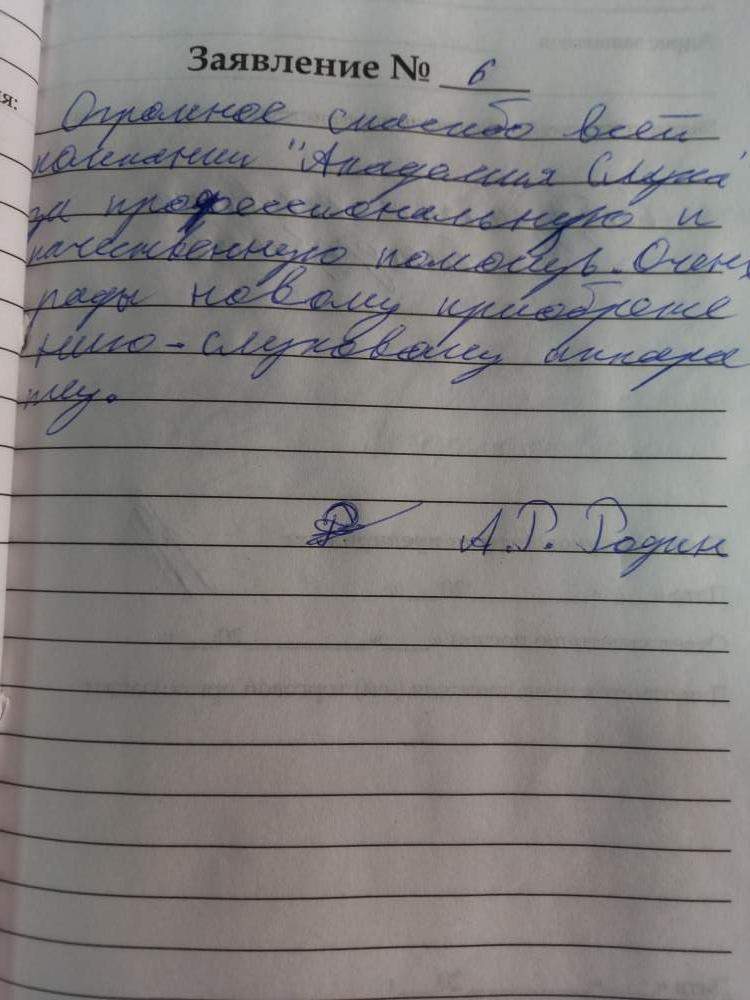 Благодарю весь персонал Академии Слуха за их труд и добродушие