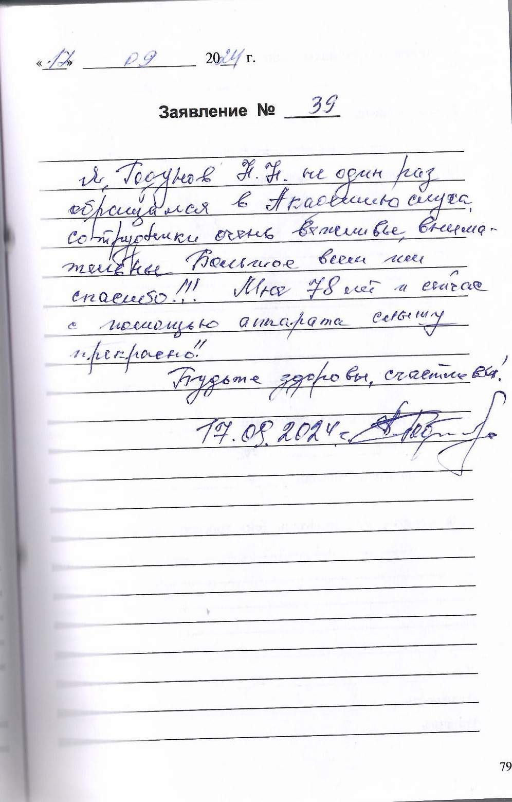 Я, Годунов Н.Н., не один раз обращался в Академию слуха, сотрудники очень вежливые, внимательные. Большое всем им спасибо!!! Мне 78 лет и сейчас с помощью аппарата слышу прекрасно!! Будьте здоровы, счастливы!