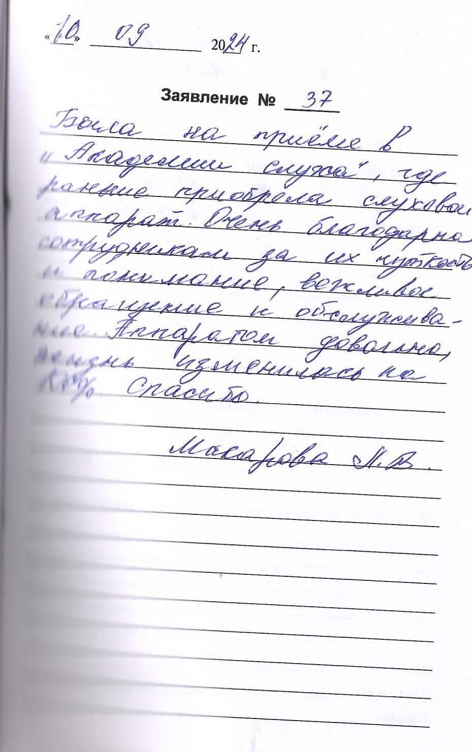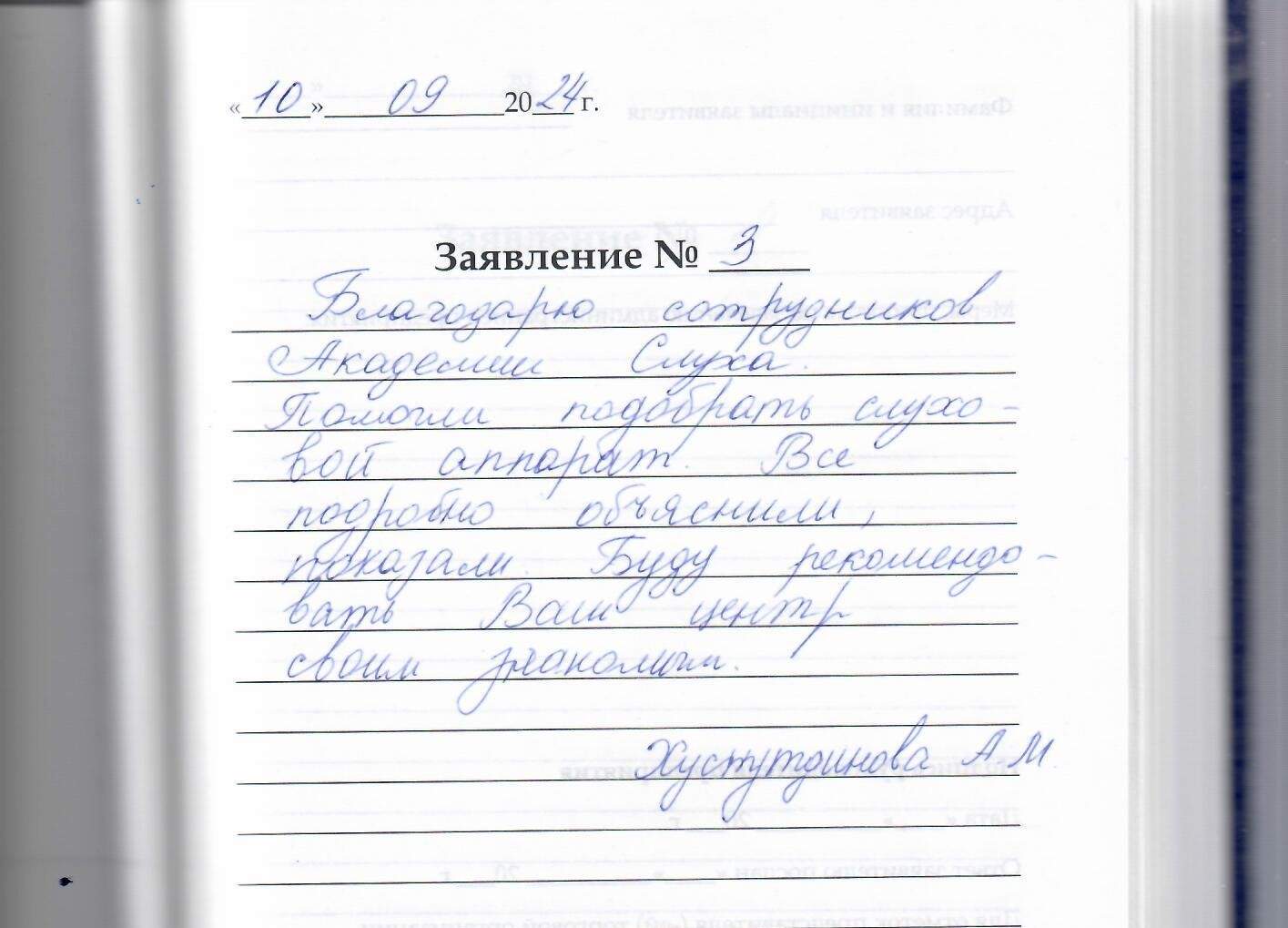 Благодарю сотрудников Академии Слуха. Помогли подобрать слуховой аппарат. Все подробно объяснили, показали. Буду рекомендовать Ваш центр свои знакомым. Хуснутдинова А.М.