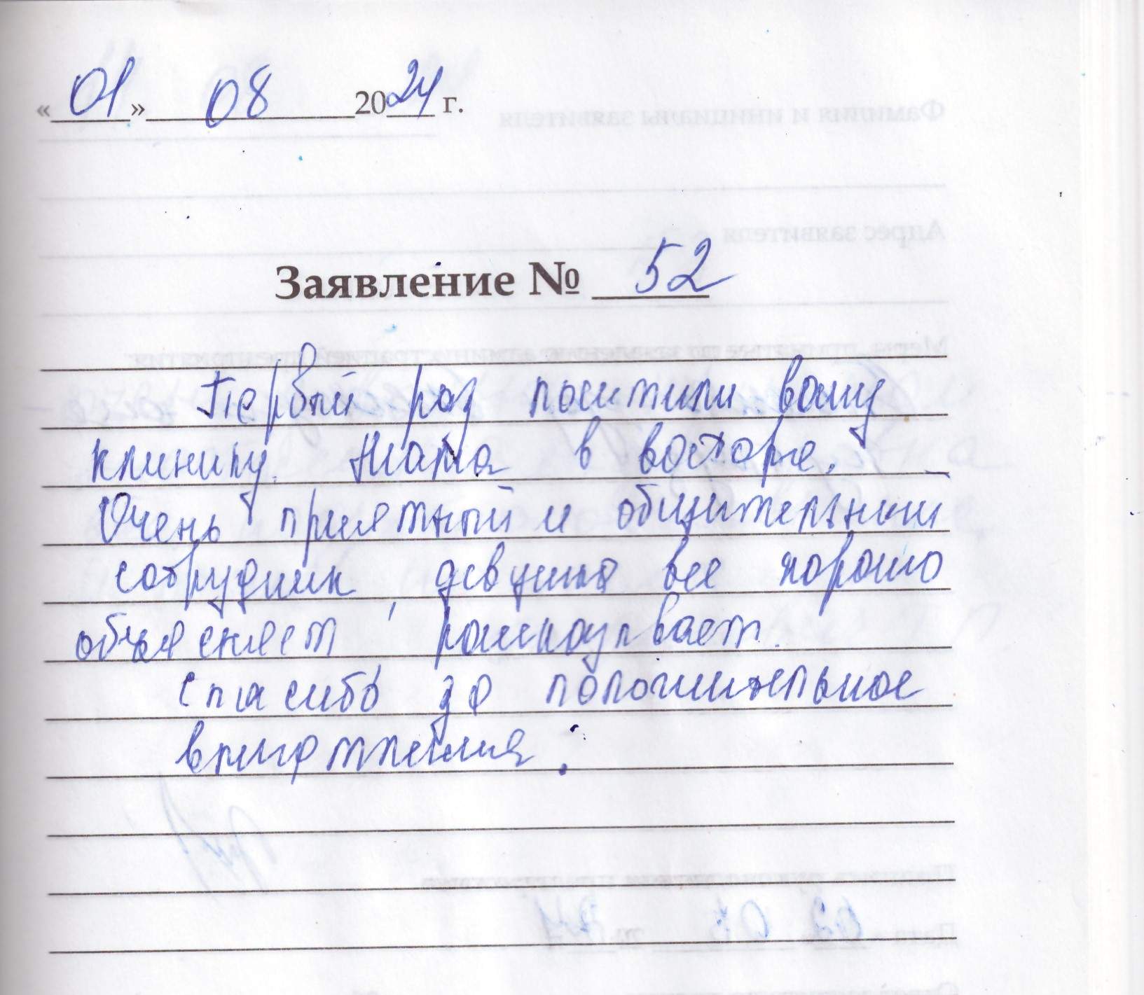 Первый раз посетила вашу клинику.Мама в восторге.Очень приятный и общительный сотрудник,девушка все хорошо объясняет ,рассказывает .Спасибо за положительные впечатления.