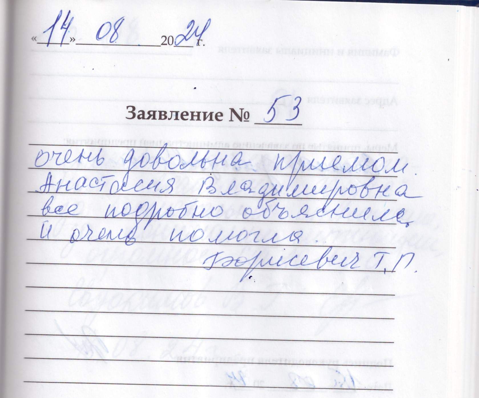 Очень довольна приемом. Анастасия Владимировна все подробно объяснила и очень помогла.