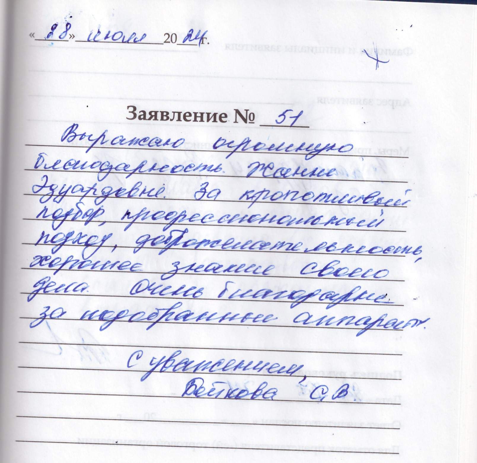 Выражаю огромную благодарность Жанне Эдуардовне за кропотливый подбор,профессиональный подход,доброжелательность,хорошее знание своего дела.Очень благодарна за подобранные аппараты.