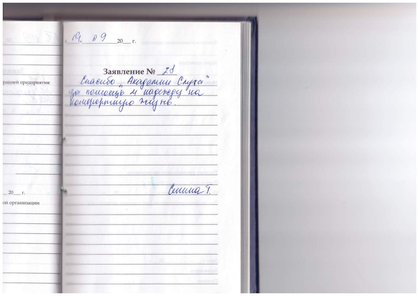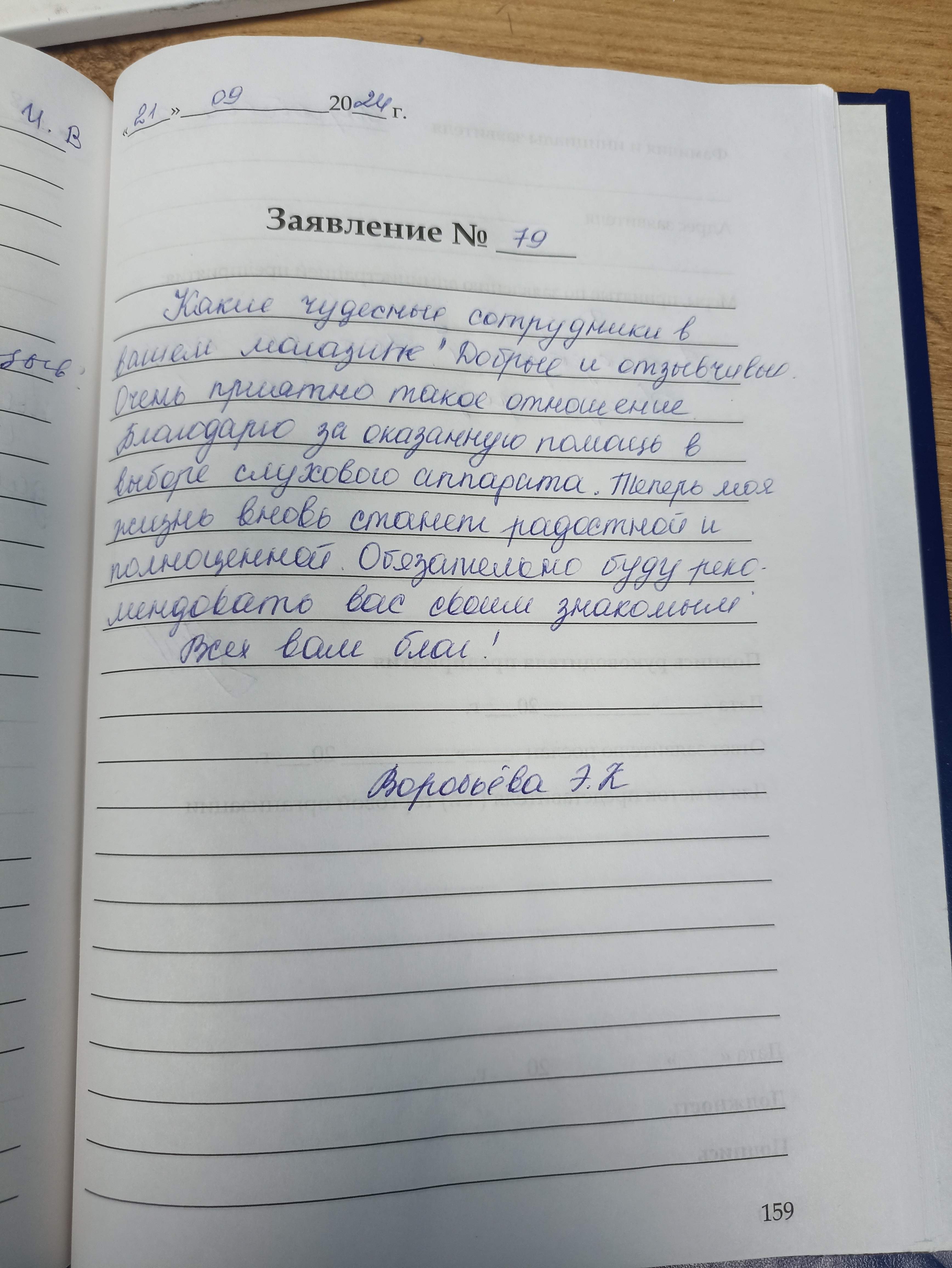 Я, МосаловаА.П. выражаю огромную благодарность " Академии Слуха" . Все на высшем уровне . Объяснили, показали, рассказали. Очень внимательны и доброжелательны . Большое спасибо !!!