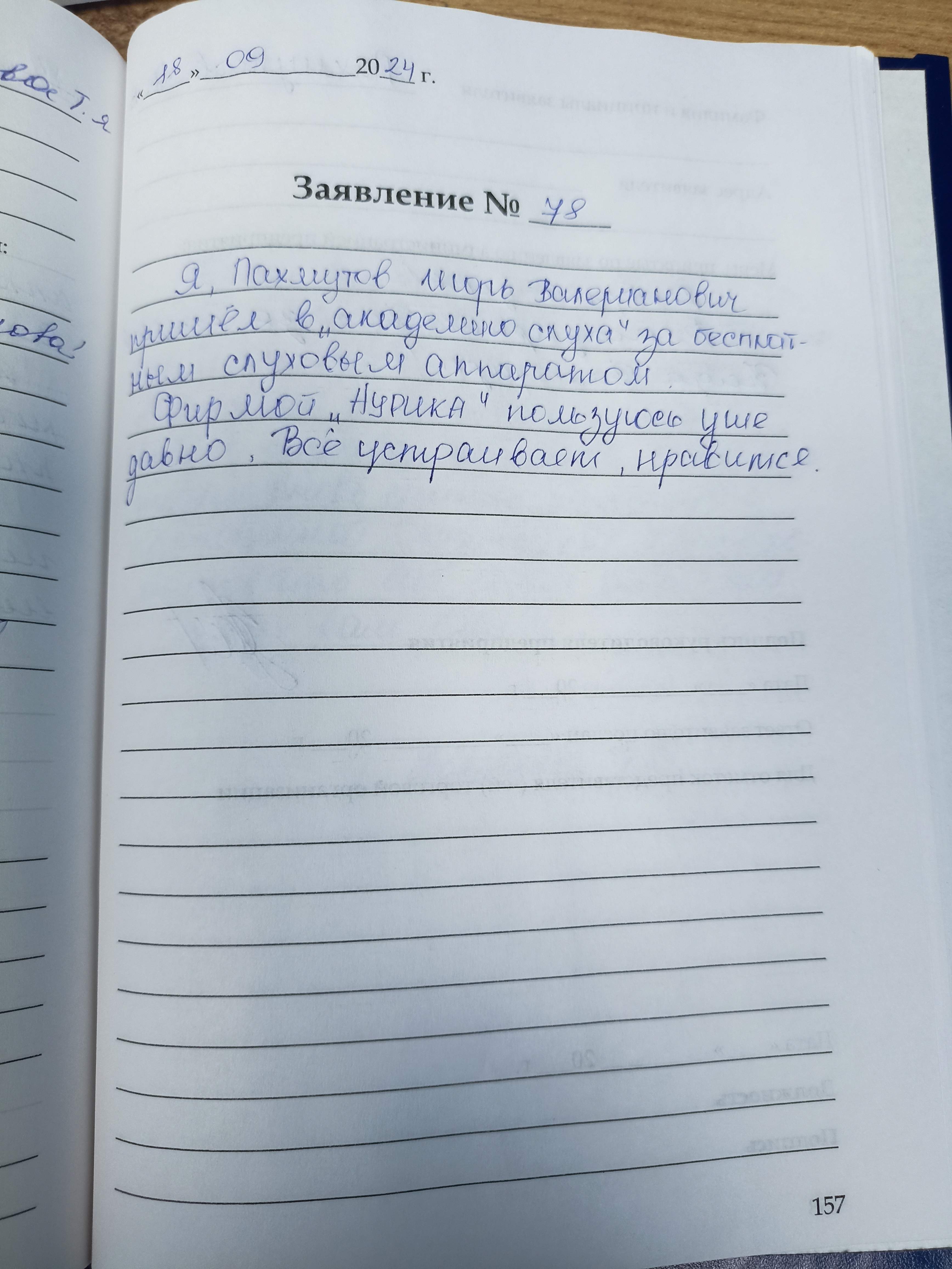 Я,Пахмутов Игорь Валерьевич пришел в "Академию слуха за бесплатным слуховым аппаратом.