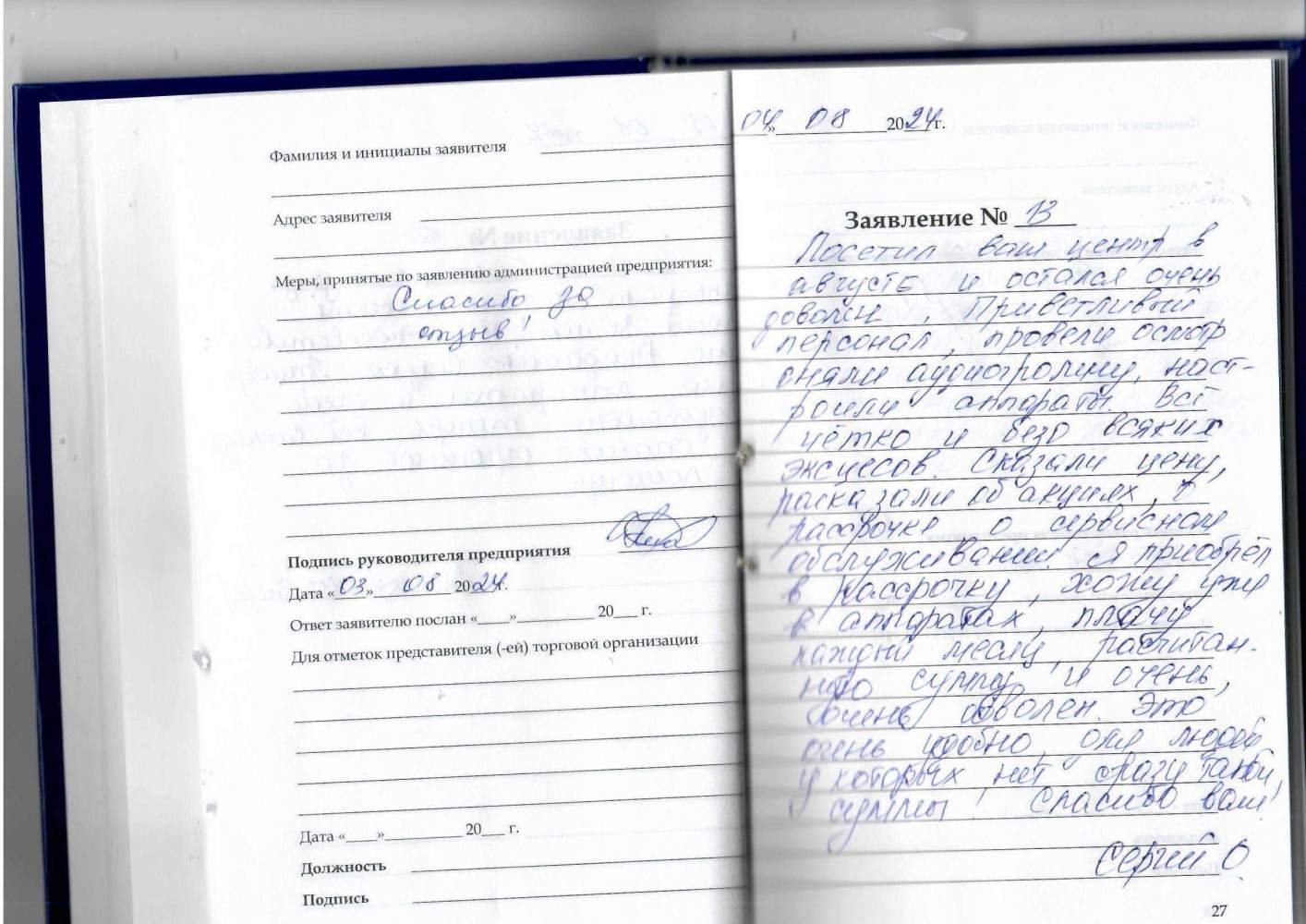 Посетил ваш центр в августе и остался очень доволен. Приветливый персонал, провели осмотр, сняли аудиограмму, настроили аппараты. Всё чётко и без всяких эксцессов. Сказали цену, рассказали про акции, о рассрочке, о сервисном обслуживании. Я приобрёл в рассрочку, хожу уже в аппаратах, плачу каждый месяц рассчитанную сумму и очень доволен. Это очень удобно для людей, у которых нет сразу такой суммы! Спасибо вам!