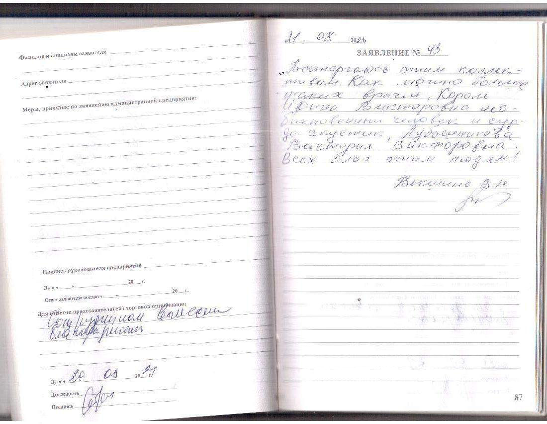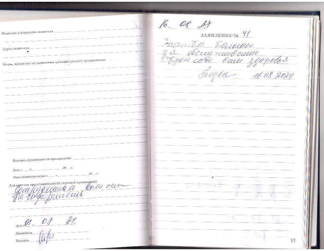 Спасибо большое за обслуживание,