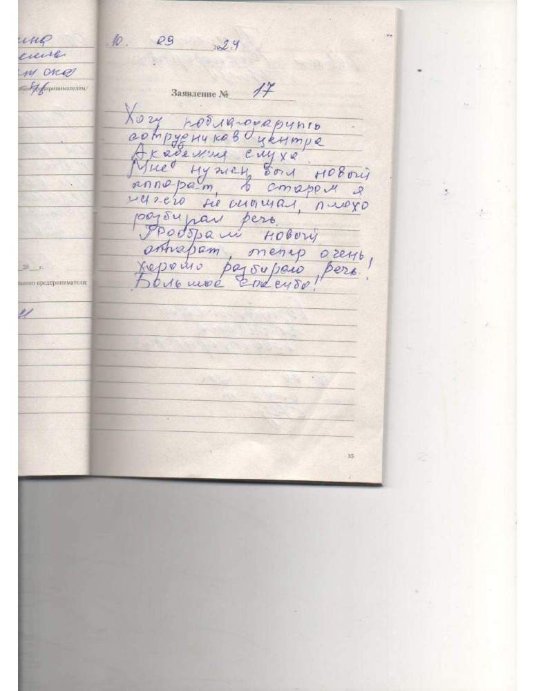 Пришли в Академию слуха по рекомендации доктора. Хорошо нас приняли, подобрали мне слуховые аппараты. Спасибо девочкам за терпение.