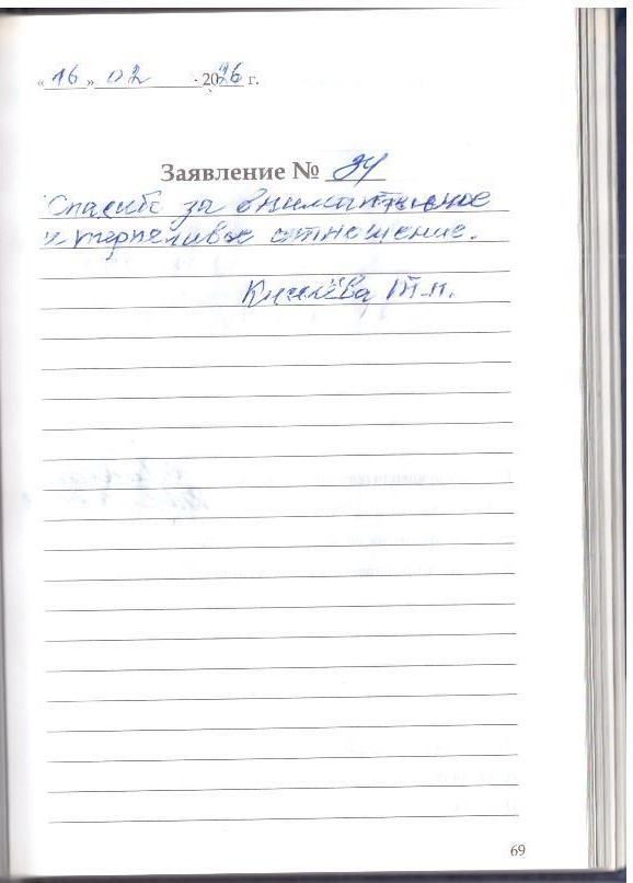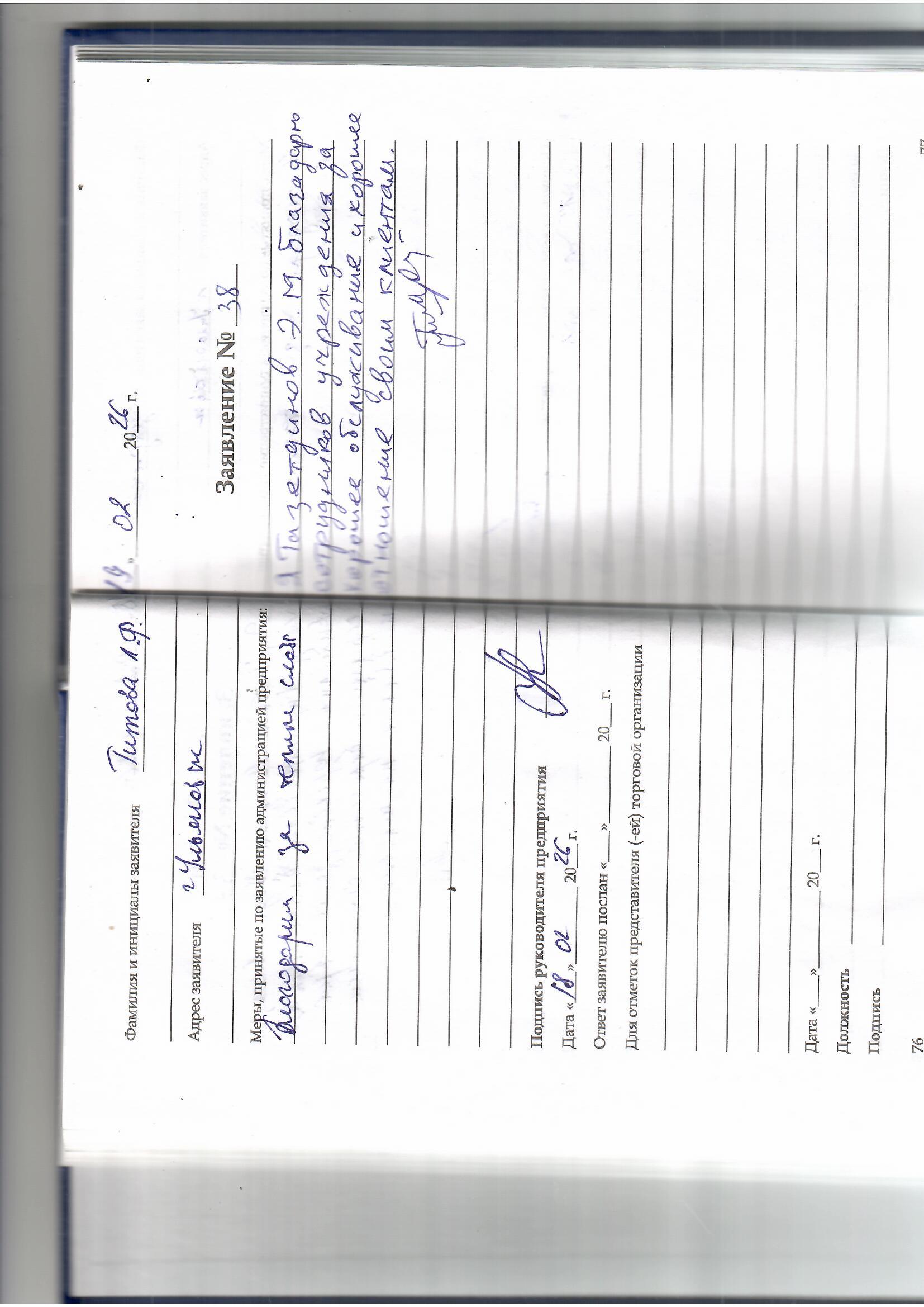 Я, Тазетдинов Э.М. благодарю сотрудником учреждения за хорошее обслуживание и хорошее отношение к своим клиентам .