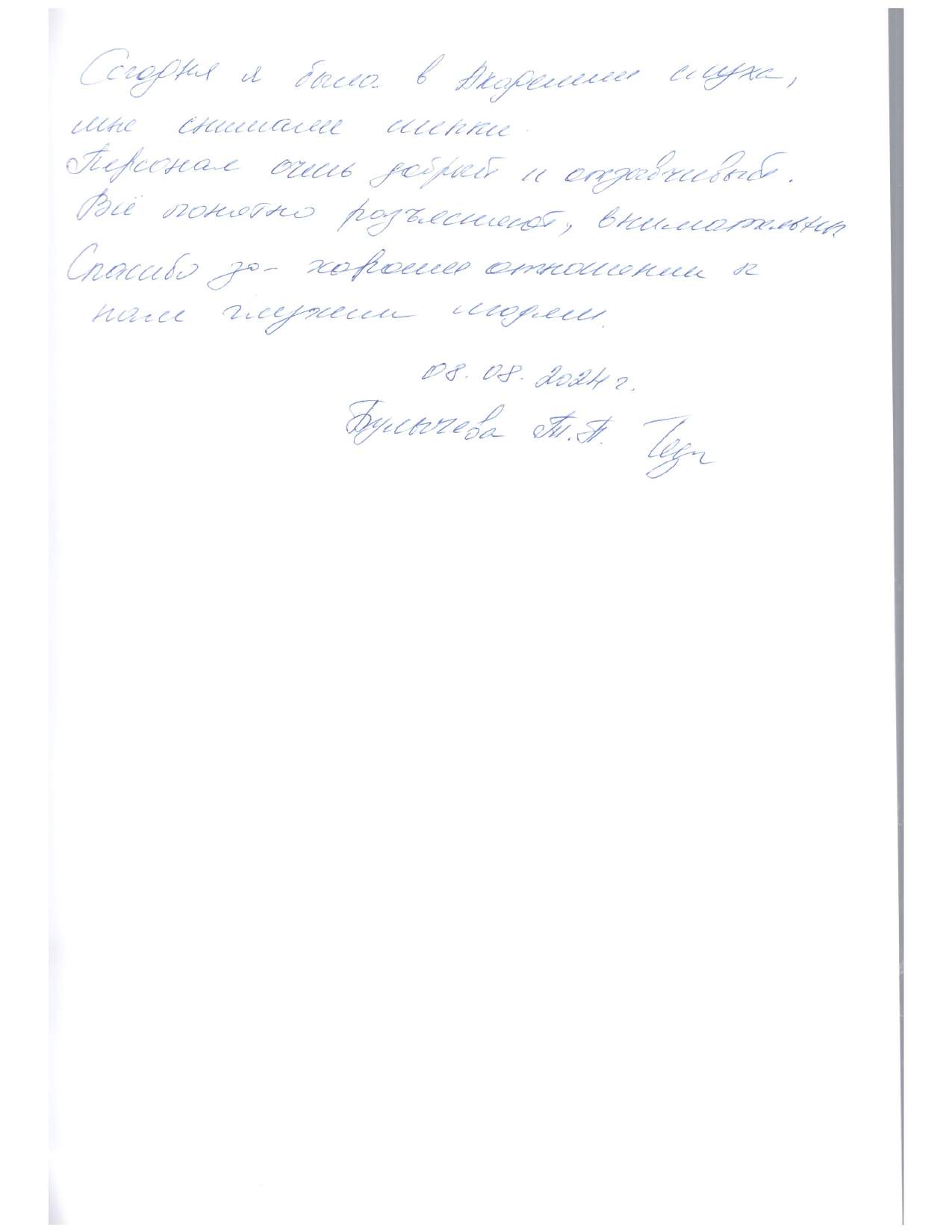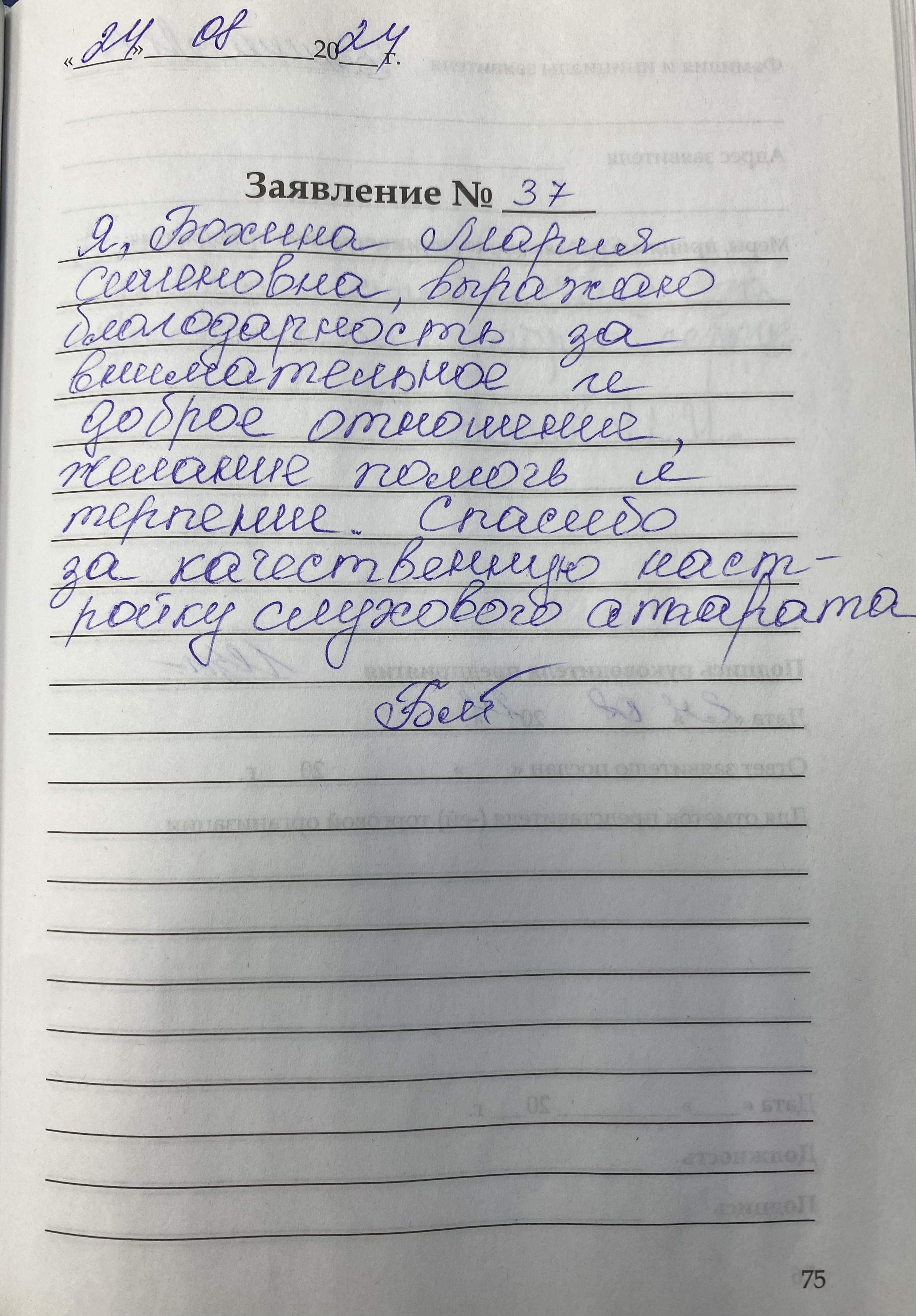Я, Бохина Мария Семеновна, выражаю благодарность за внимательное и доброе отношение, желание помочь и терпение. Спасибо за качественную настройку слухового аппарата