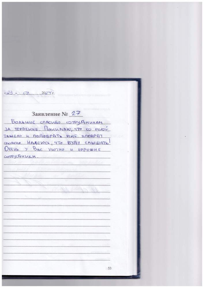 Хочу выразить благодарность сотрудникам центра " Академия Слуха".Не один раз обращались в центр,всегда находим здесь отзывчивое, внимательное отношение,сотрудники всегда готовы помочь.Спасибо!!!