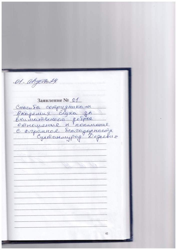 Хочу выразить благодарность сотрудникам центра " Академия Слуха".Не один раз обращались в центр,всегда находим здесь отзывчивое, внимательное отношение,сотрудники всегда готовы помочь.Спасибо!!!
