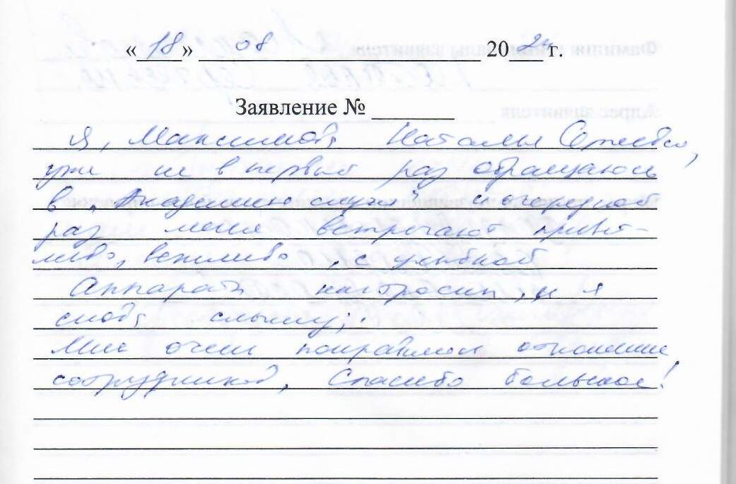 Я, Максимова Наталья Сергеевна, уже не в первый раз обращаюсь в Академию слуха и очередной раз меня встречают приветливо, вежливо, с улыбкой. Аппараты настроены и я снова слышу. Мне очень понравилось отношение сотрудников. Спасибо большое!