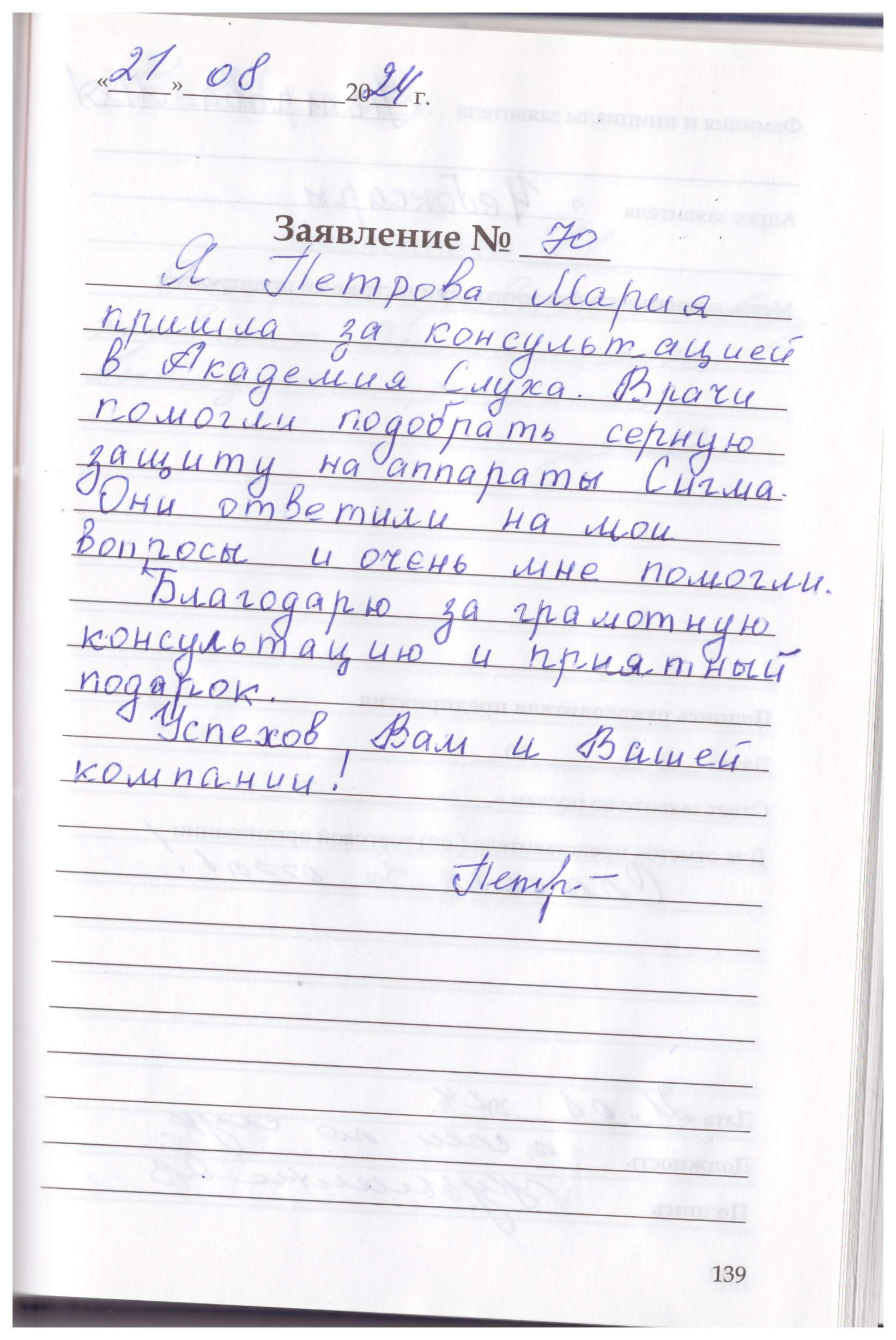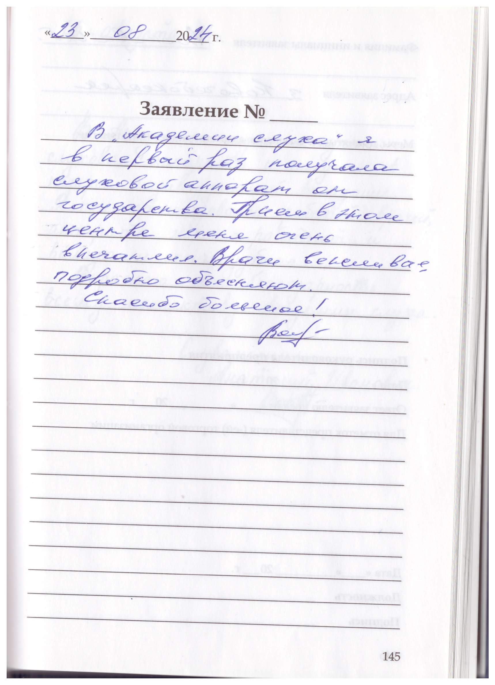Выражаю свою благодарность всему коллективу Академия слуха.