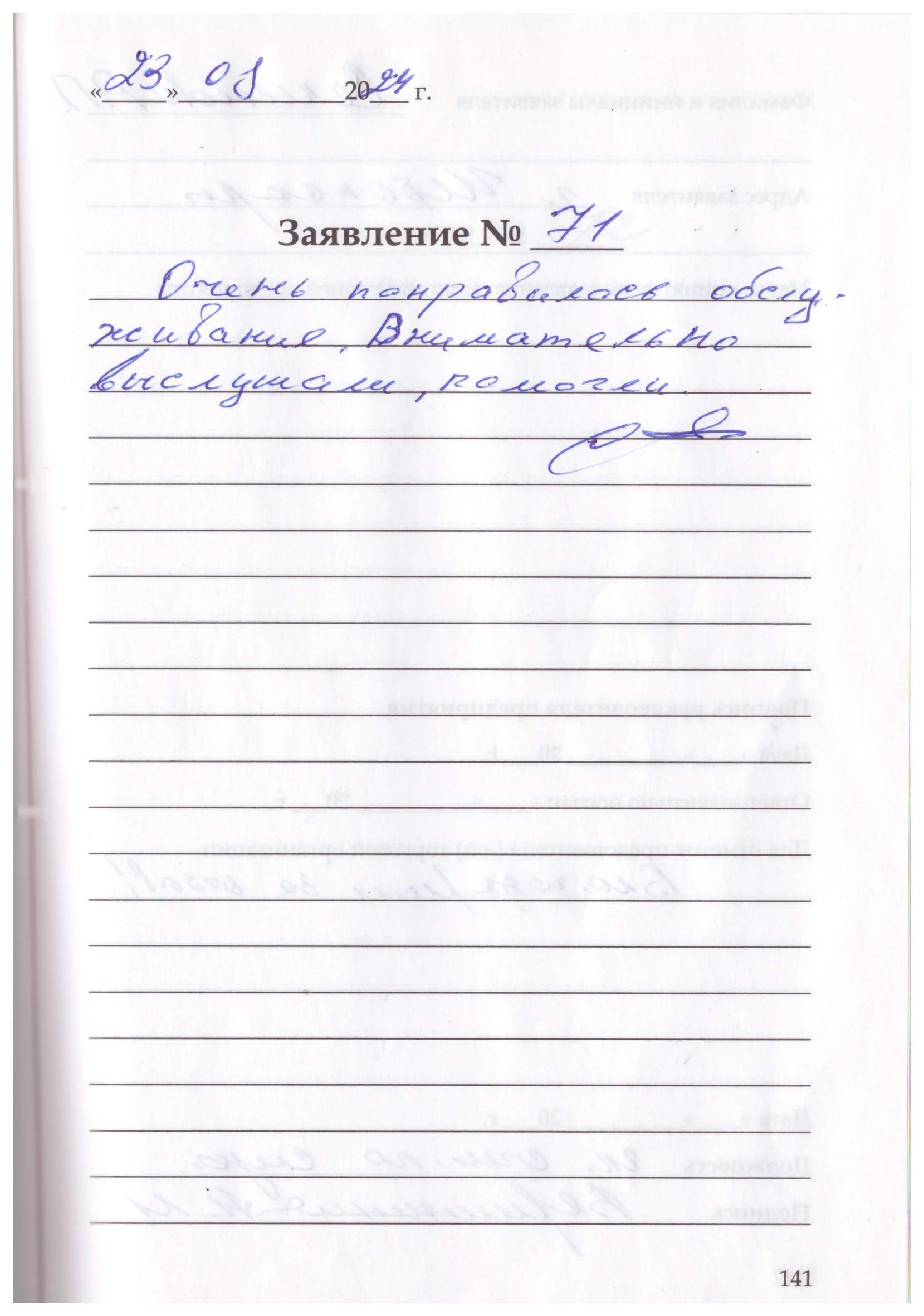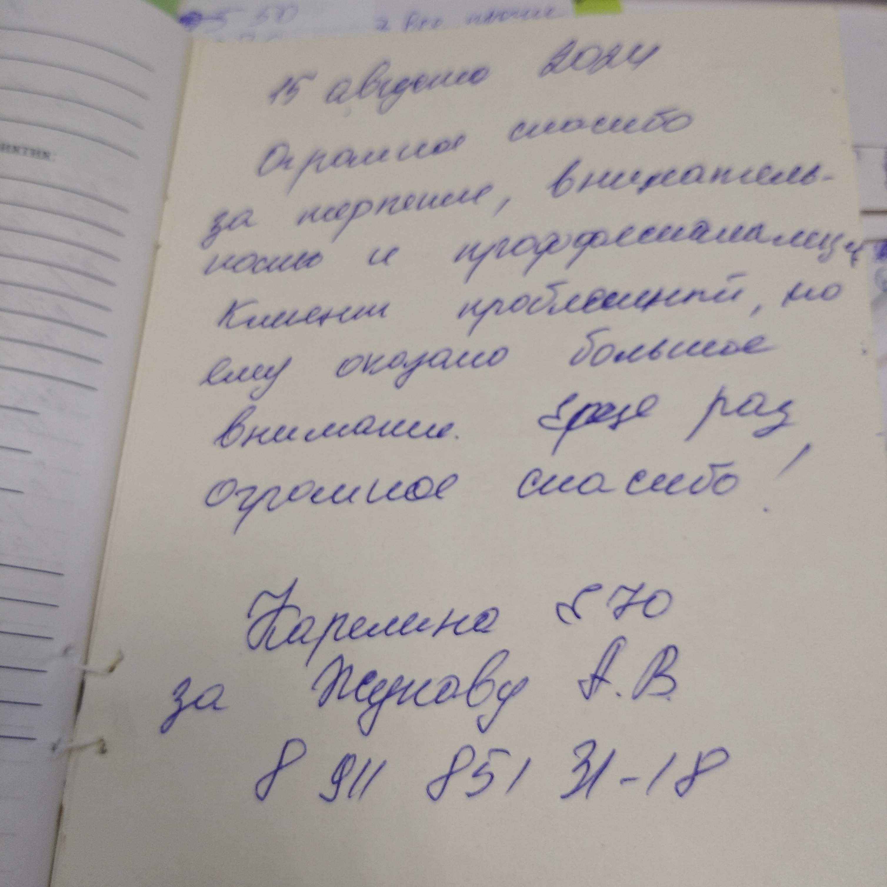 Огромное спасибо за терпение, внимательность и профессионализм. Клиент проблемный, но ему оказано большое внимание. Еще раз огромное спасибо!
