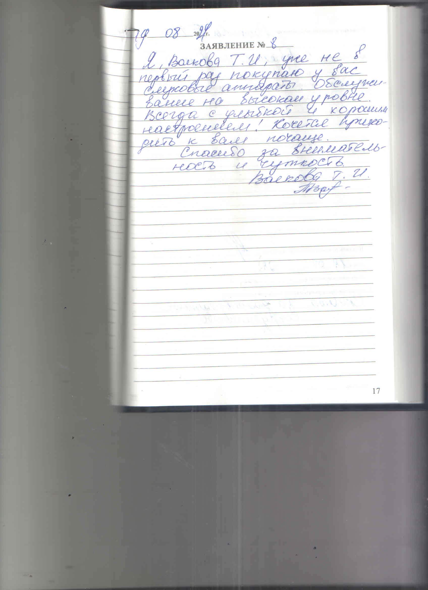 Я,Волкова Т,И. уже не в первый раз покупаю у Вас слуховые аппараты.Обслуживание на высоком уровне.Всегда с улыбкой и хорошим настроением!Хочется приходить к Вам почаще! Спасибо за внимательность и чуткость.Волкова Т.И.