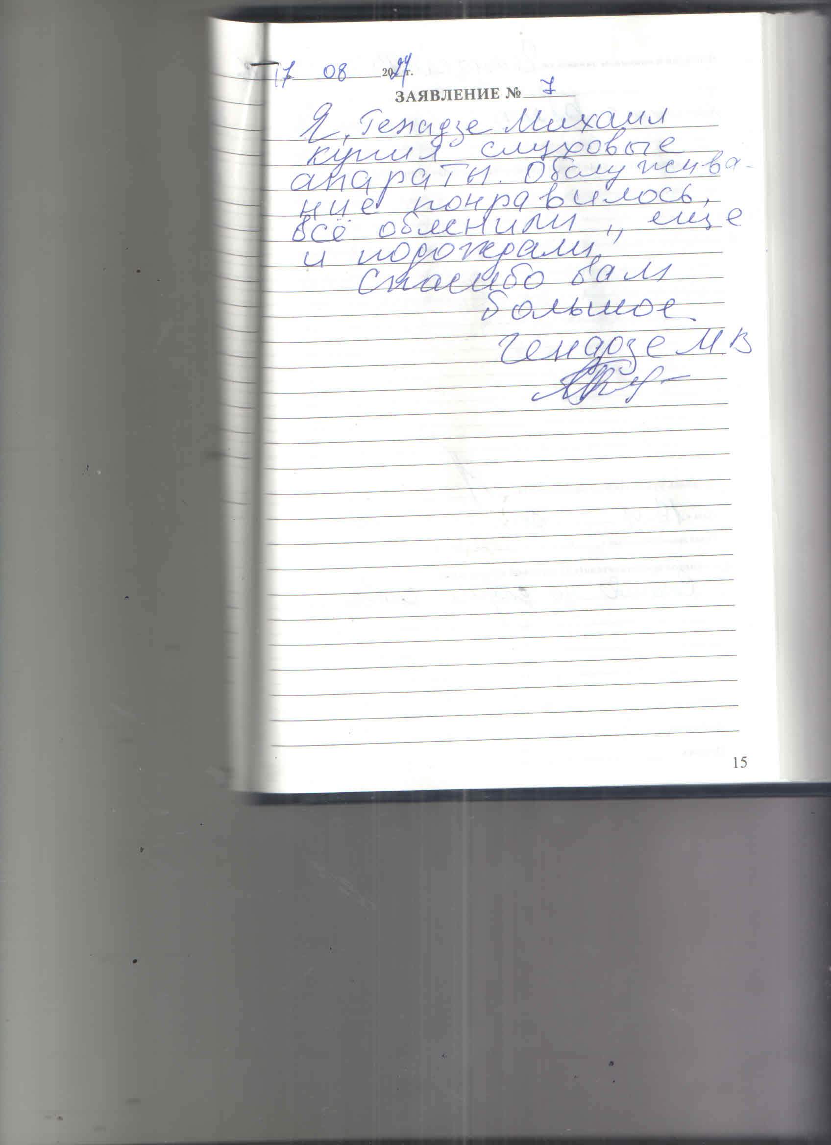 Я,Геладзе Михаил купил слуховые аппараты.Обслуживание понравилось.Все объяснили,еще и подождали .Спасибо Вам большое.Геладзе М.В.