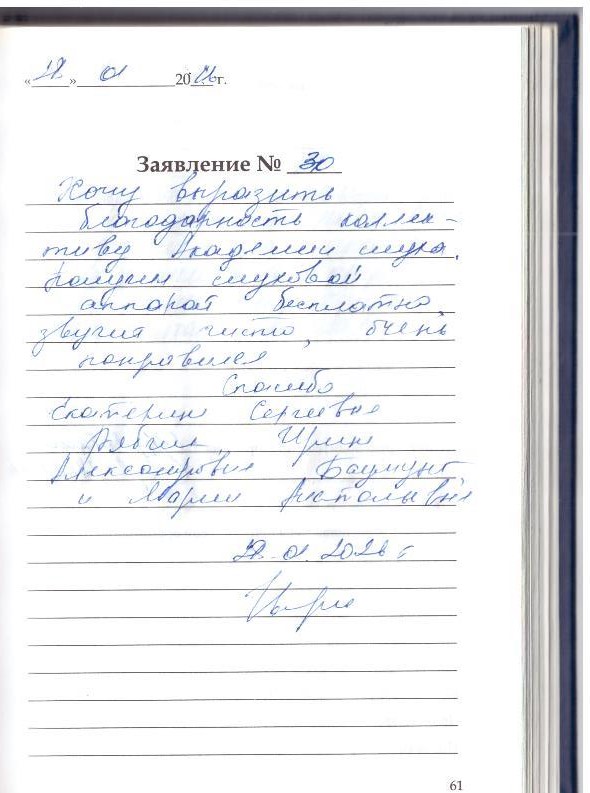 Хочу выразить благодарность коллективу "Академии слуха", получил слуховой аппарат бесплатно.Звучит чисто, очень понравился. Спасибо Екатерине Сергеевне, Ирине Александровне и Марии Анатольевне.