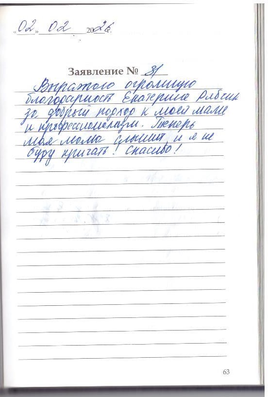 Я, Благодатнова Людмила Ильинична, благодарна за вашу работу и помощь больным, которые вы делаете нас нормальными людьми . Большое спасибо.