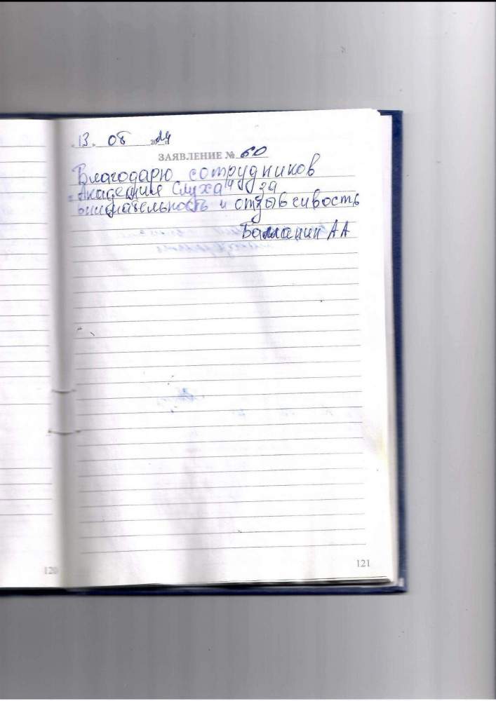 Хочу выразить благодарность персоналу "Академии Слуха" за хорошую работу. Внимательные, вежливые сотрудники. Помогли правильно подобрать аппарат. Спасибо Вам!
