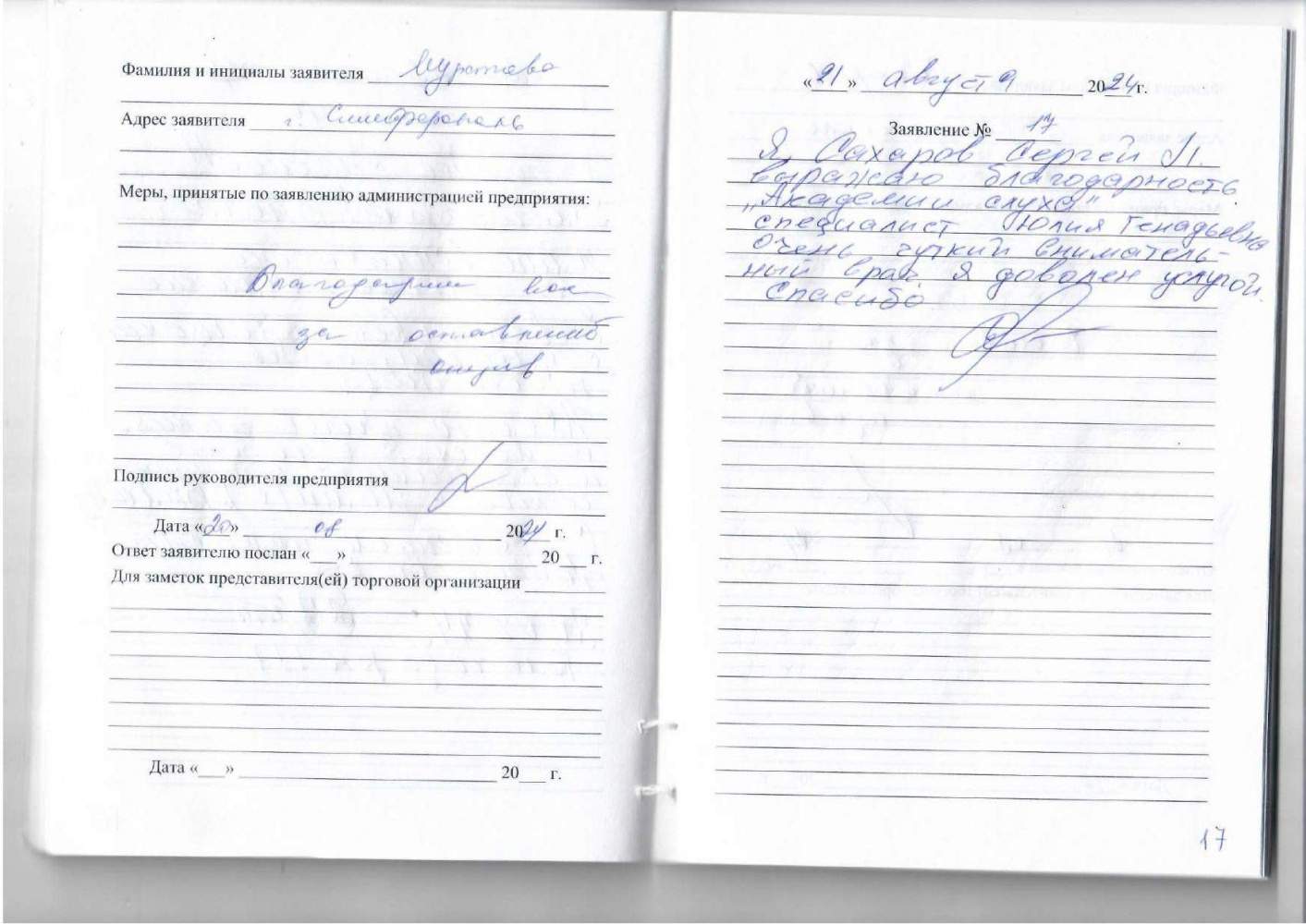Я,Туманова Мария,благодарю коллектив за очень внимательное отношение.Вежливы,добры.Желаю вашей организации процветания.Ваши услуги очень нужны людям,которые теряют слух.Спасибо большое.Мария Туманова.12.08.2024
