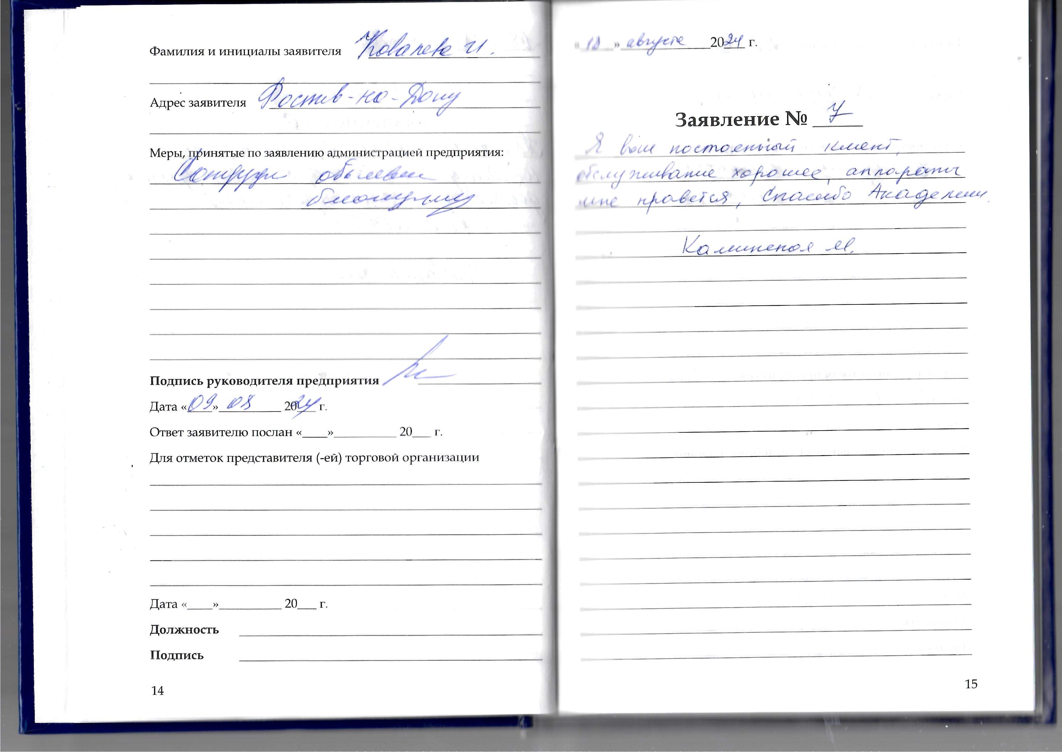 Я ваш постоянный клиент, обслуживание хорошее, аппараты мне нравятся, спасибо Академии.