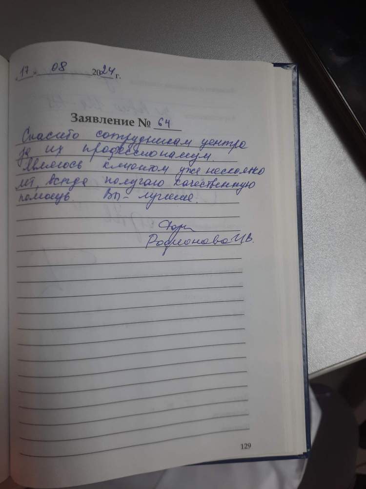 Спасибо сотрудникам центра за их профессионализм. Являюсь клиентом уже несколько лет, всегда получаю качественную помощь. Вы- лучшие.