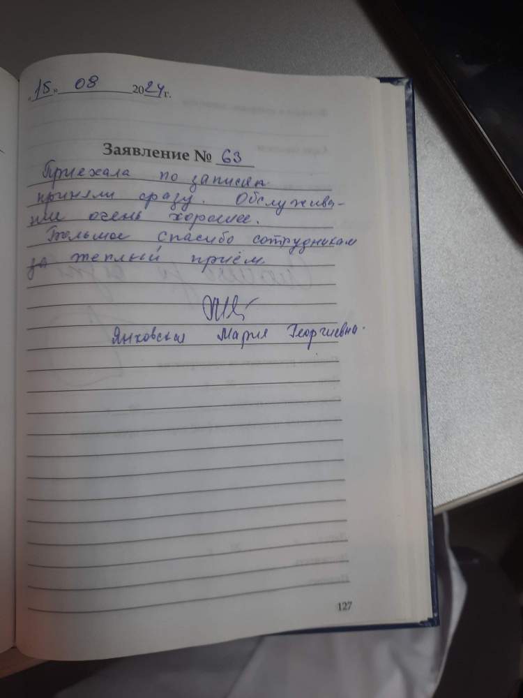 Приехала по записи, приняли сразу. Обслуживание очень хорошее. Большое спасибо сотрудникам за теплый прием.