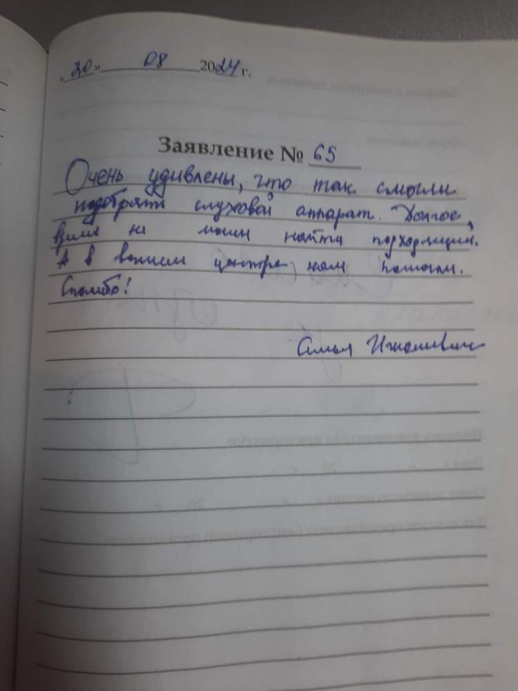 Очень удивлены, что так смогли подобрать слуховой аппарат. Долгое время не могли найти подходящий. А в вашем центре нам помогли. Спасибо!