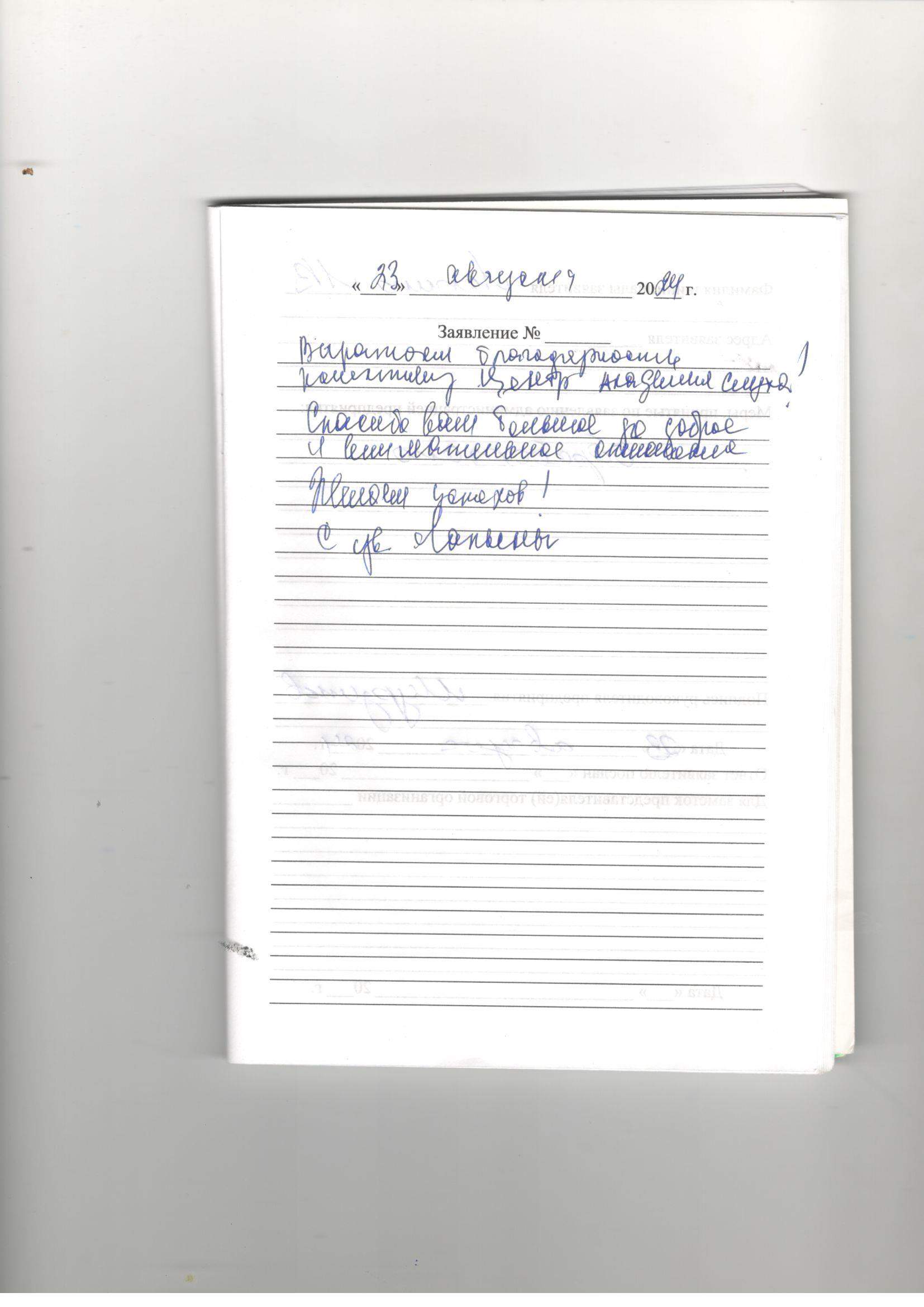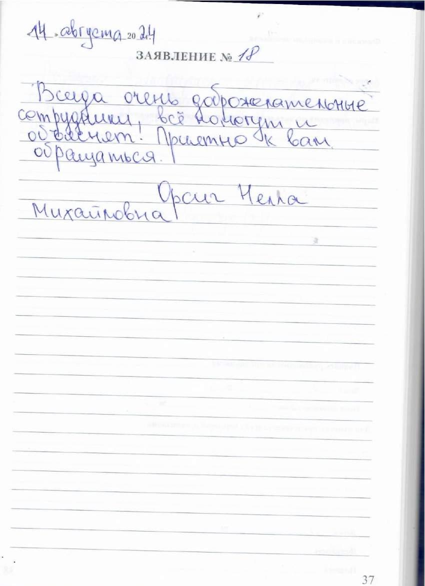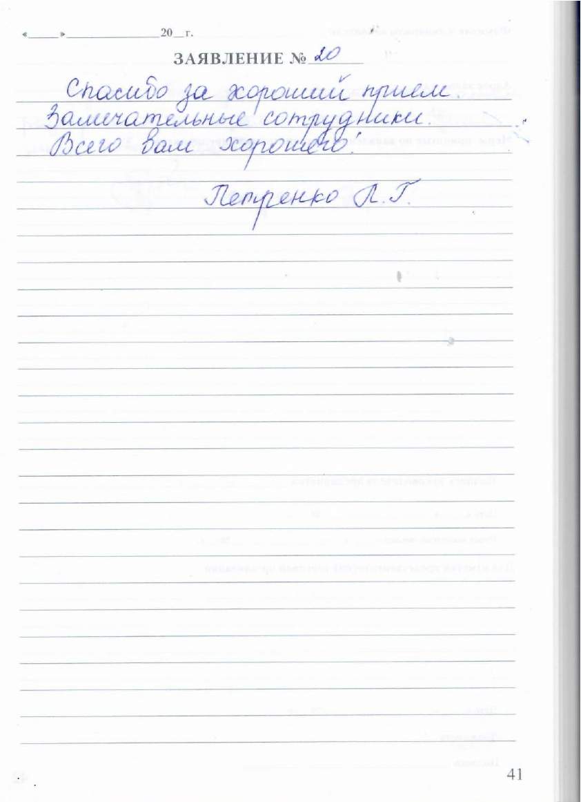 Большое спасибо за чуткость, внимание, отзывчивость и заботу как о своих родных. Сейчас-это роскошь. Желаю сотрудникам всего доброго: здоровья, благополучия и успехов в вашем нужном деле. С уважение Еличева Л.В.