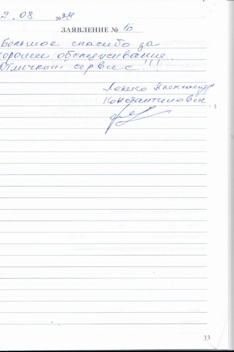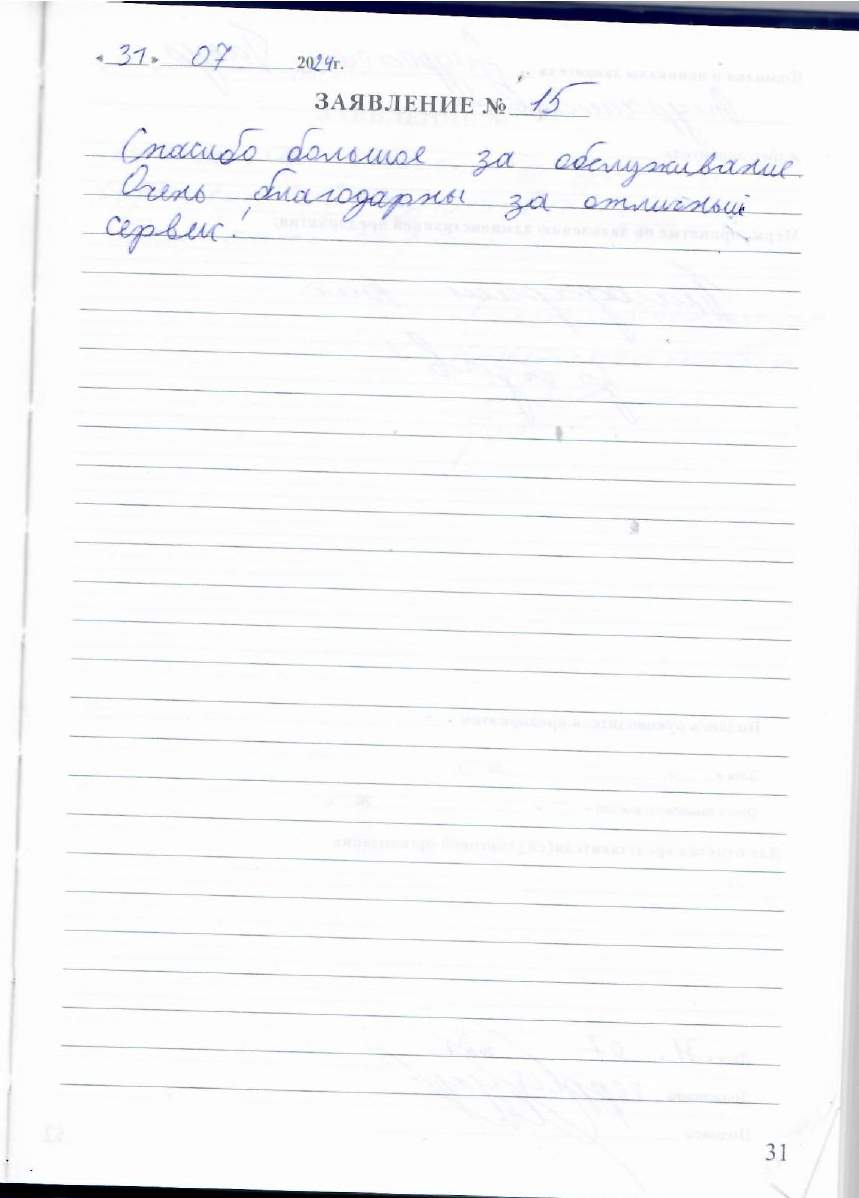 Большое спасибо за хорошее обслуживание. Отличный сервис!!!