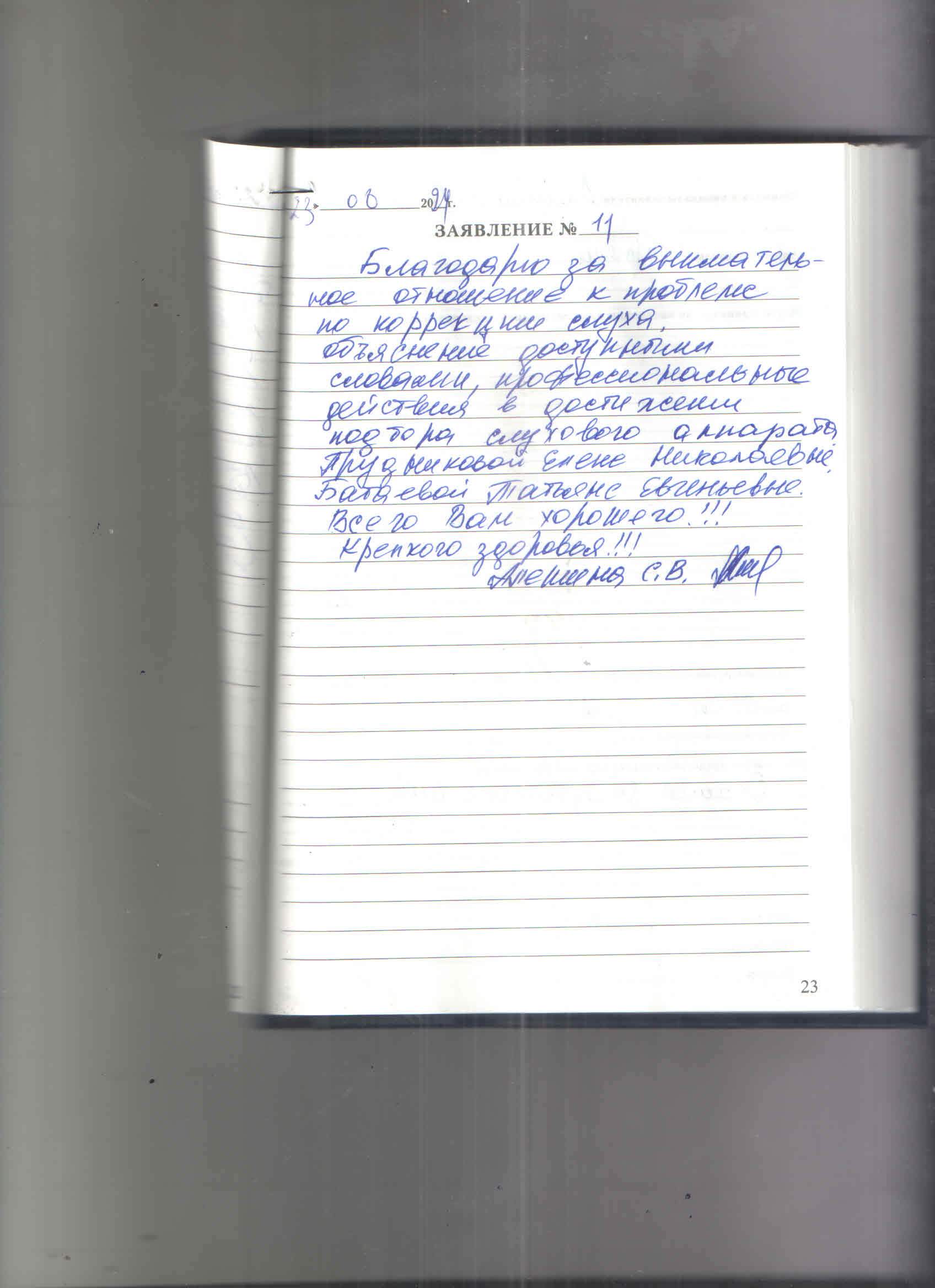 Шулепова Надежда Егоровна, я получила у вас аппараты, мне очень понравилось ваше обслуживание, внимательное. Теперь я хорошо слышу. Большое спасибо.