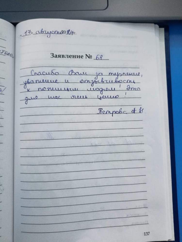 Спасибо Вам за терпение, уважение и отзывчивость к пожилым людям! Это для них очень ценно!