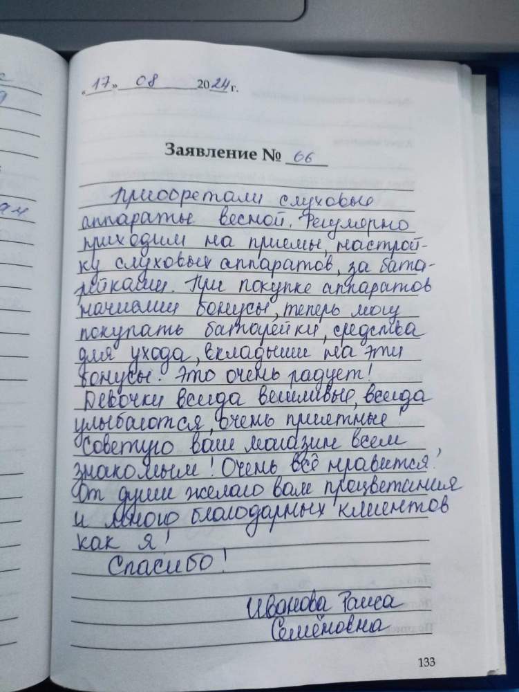 Большая благодарность сотрудника центра . Приходим часто с мужем, меняем вкладыши,покупаем батарейки . Всем огромное спасибо.