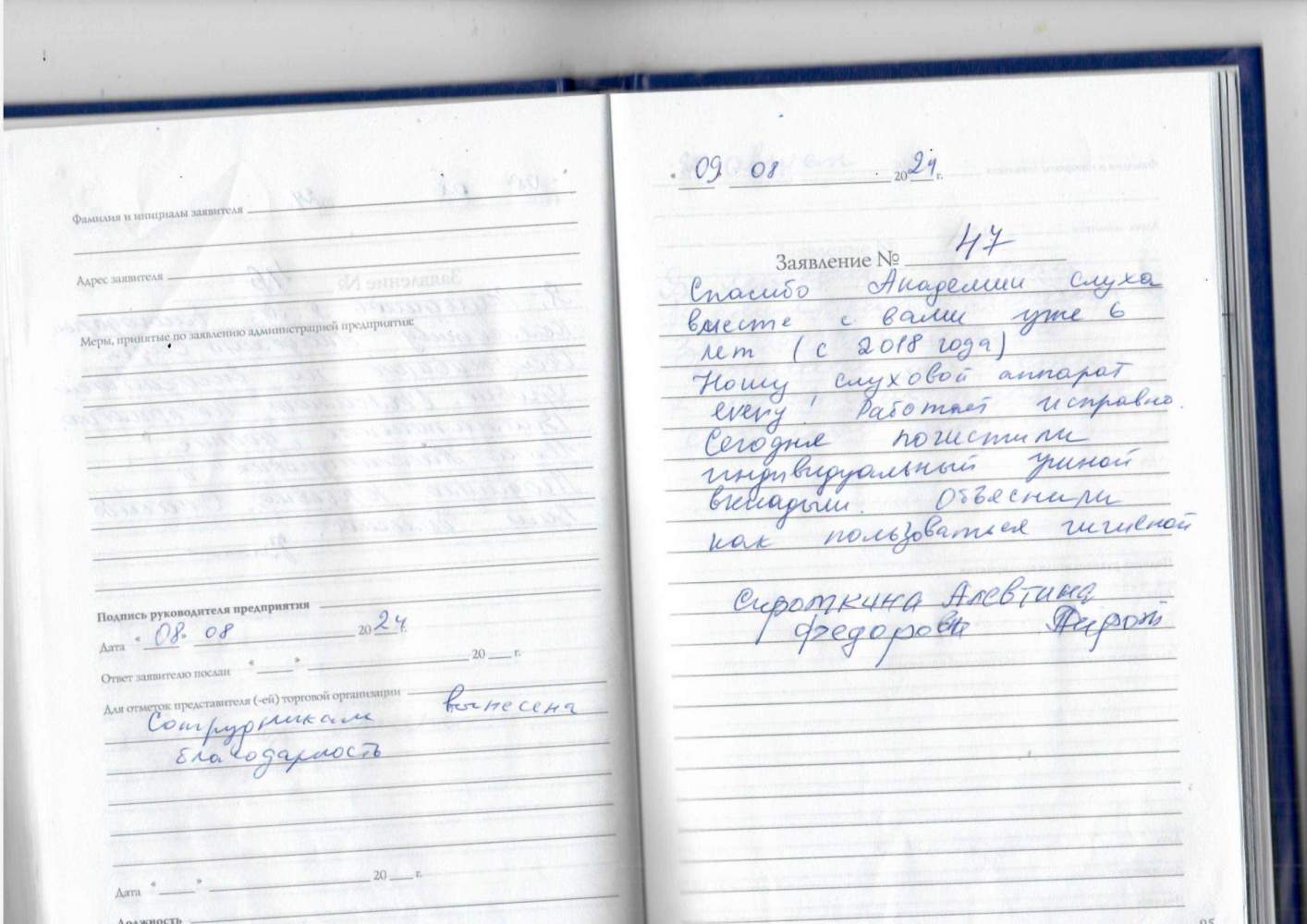 Спасибо Академии слуха вместе с вами уже 6 лет(с 2018 года).Ношу слуховой аппарат every ! Работает исправно.Сегодня почистили индивидуальный ушной вкладыш .Объяснили как пользоваться гигиеной.