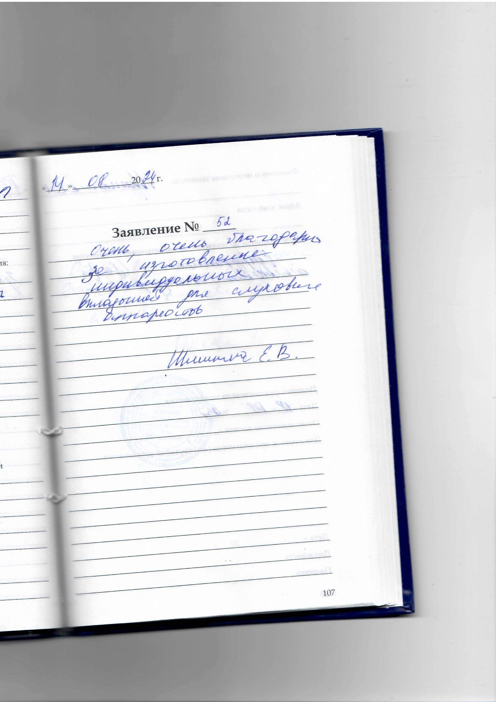 Очень, очень благодарю за изготовление индивидуальных вкладышей для слуховых аппаратов