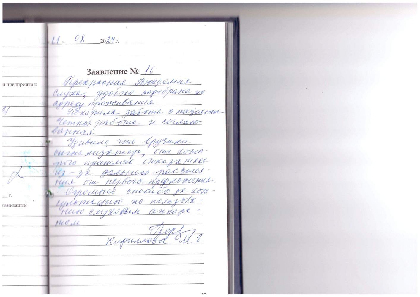 Прошу выразить благодарность за оказание помощи в профилактике потери слуха, вежливое и обходительное обхождение