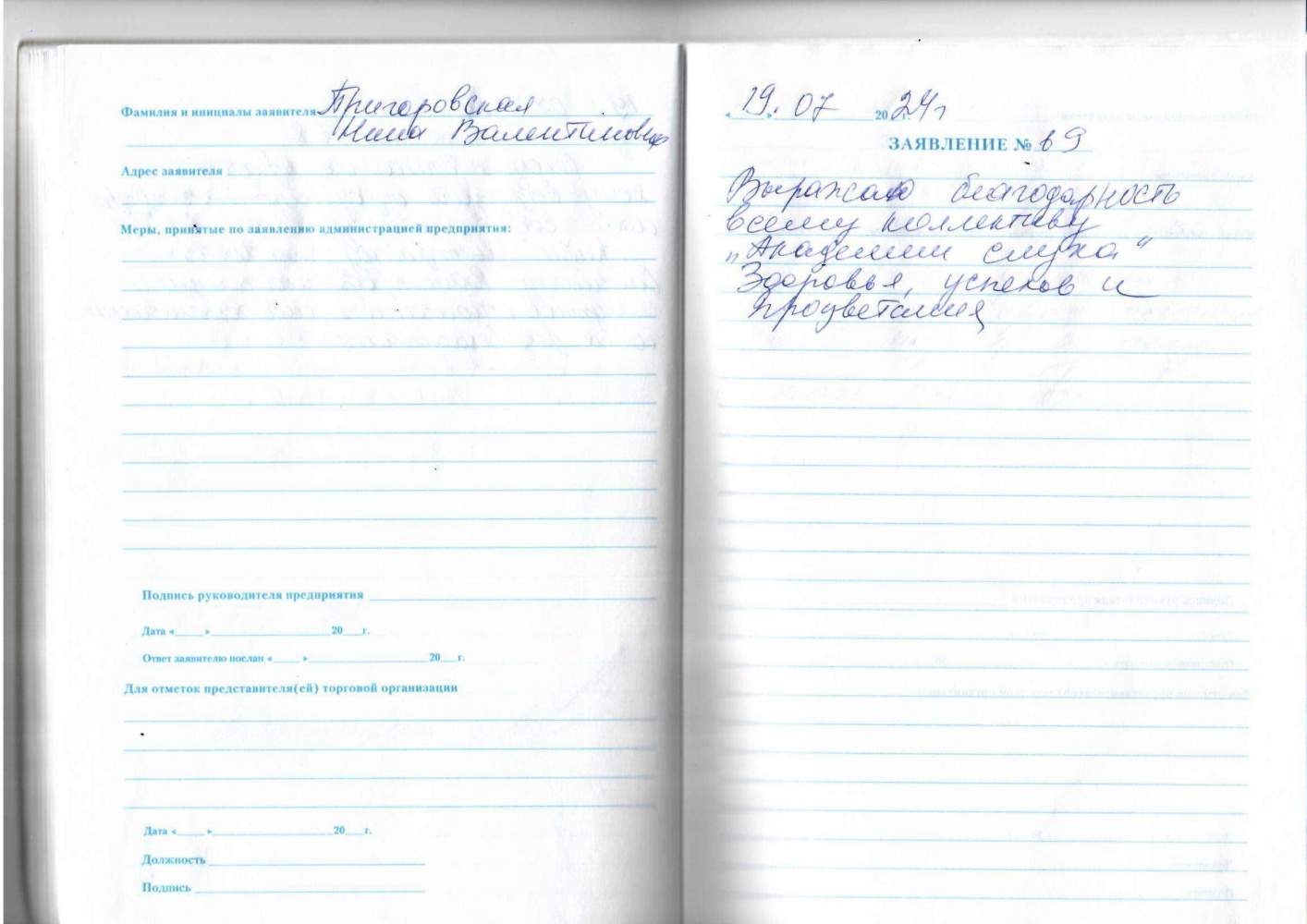 Я, Разживина Любовь Михайловна выражаю благодарность Лилии Анатольевне за доброжелательное отношение .