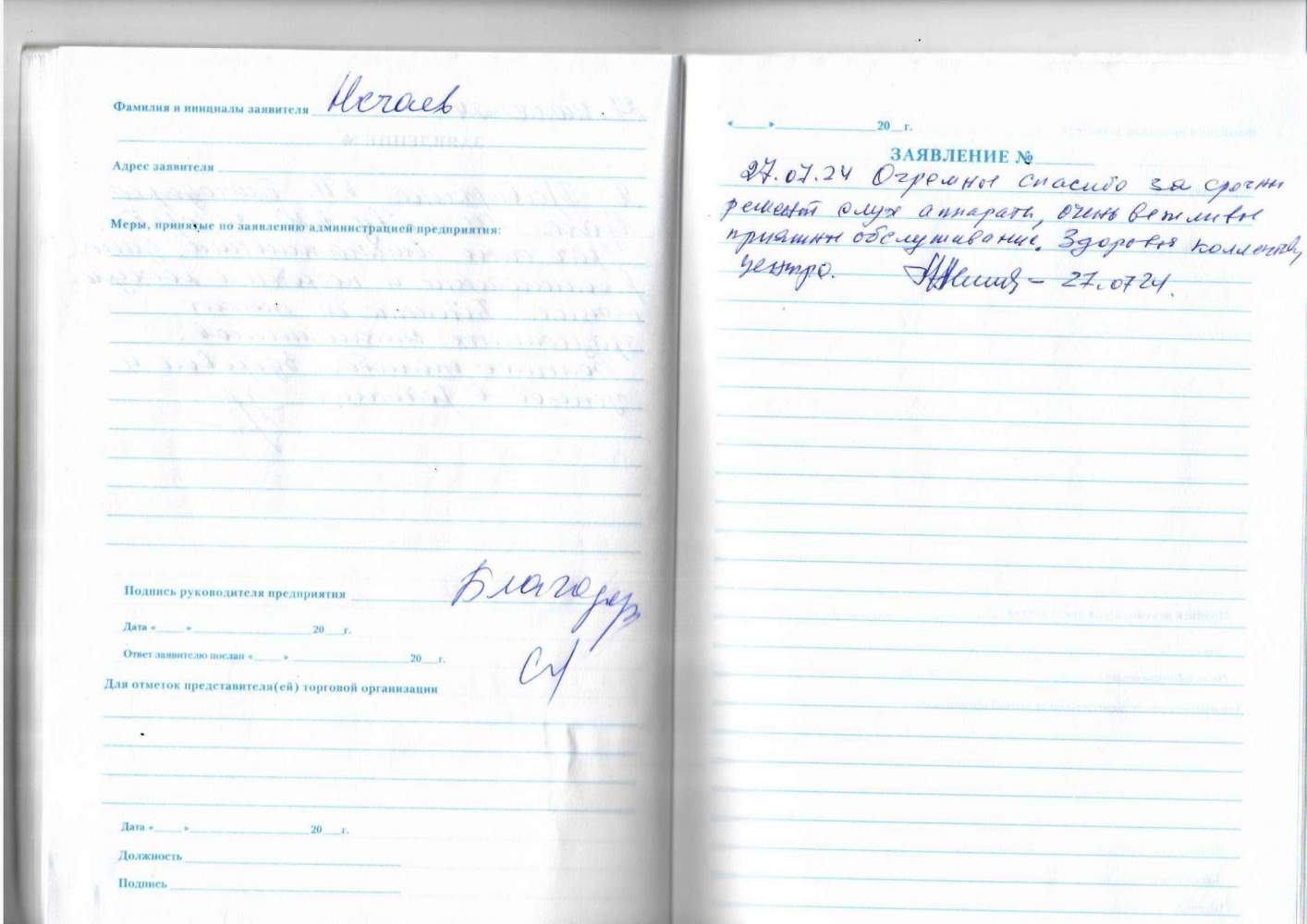 Огромное спасибо за срочный ремонт слухового аппарата. Очень вежливое, приятное обслуживание. Здоровья коллективу Центра.